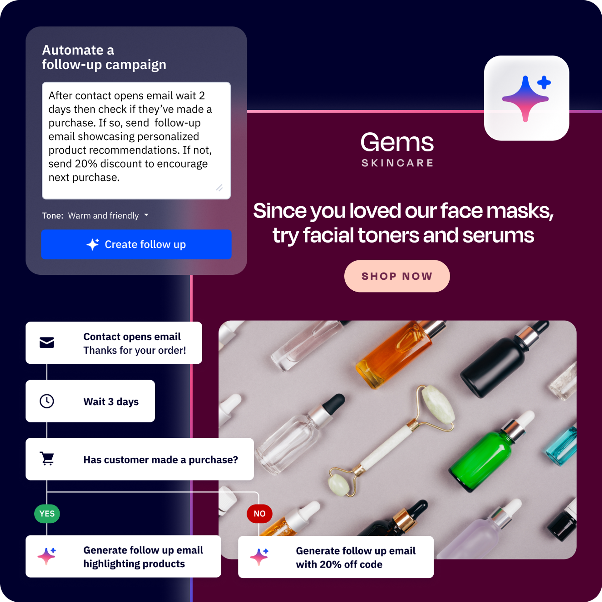 Build beautiful emails with our drag-and-drop designer or let AI create on-brand campaigns in seconds.