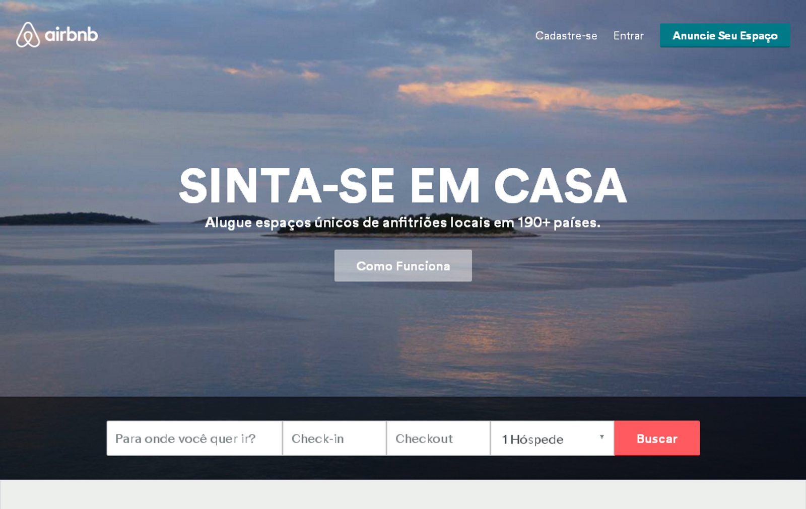 Com a frase “sinta-se em casa”, a Airbnb faz um texto bastante direto para convidar seu leitor a navegar pelo site e aproveitar lugares únicos. Ela também usa a imagem como apoio do texto, trazendo ainda mais apelo para gerar interesse.