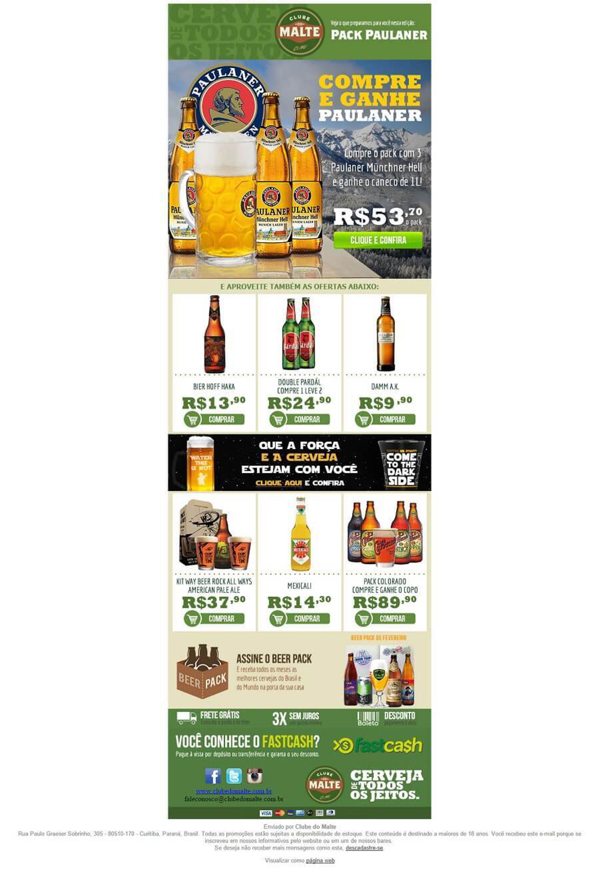 Nosso próximo exemplo de como fazer um bom email marketing trata-se de uma mensagem promocional. Aqui, são anunciados descontos para a chopeira da marca.