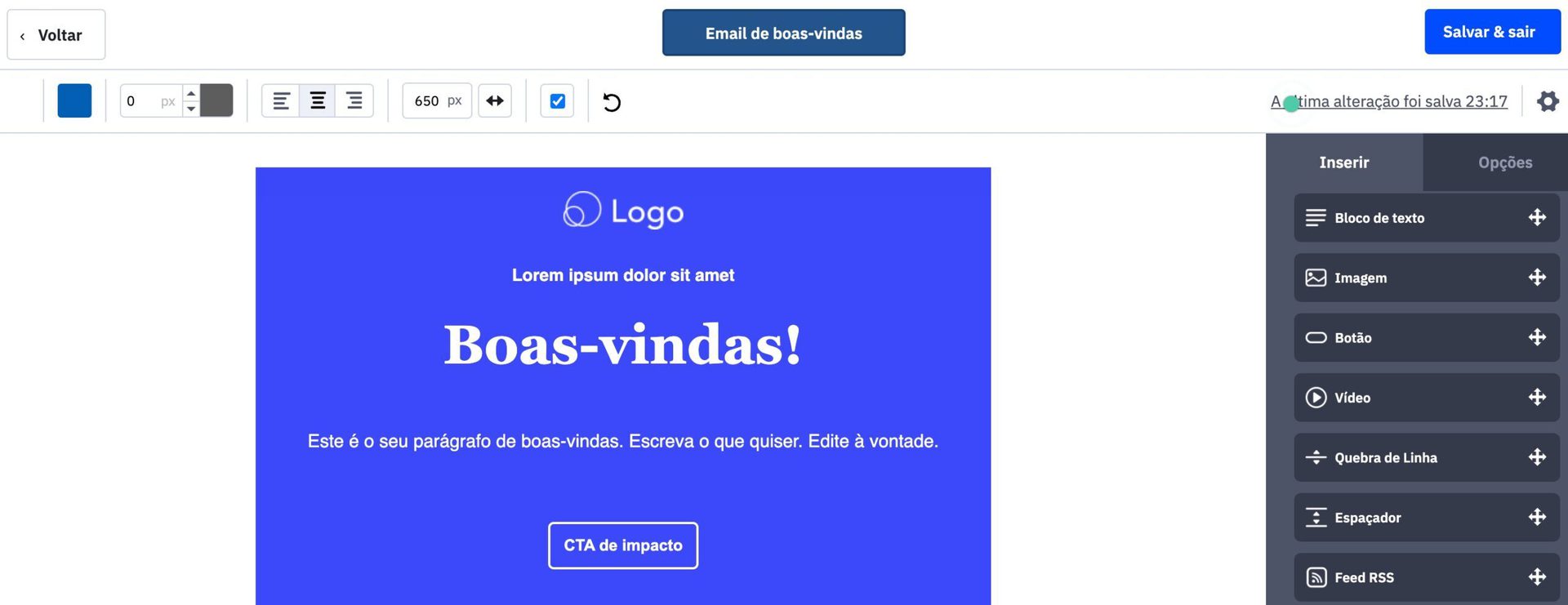 Pronto! A partir de agora, você pode personalizar o layout escolhido como quiser. Viu como fazer email marketing ficou mais fácil agora?