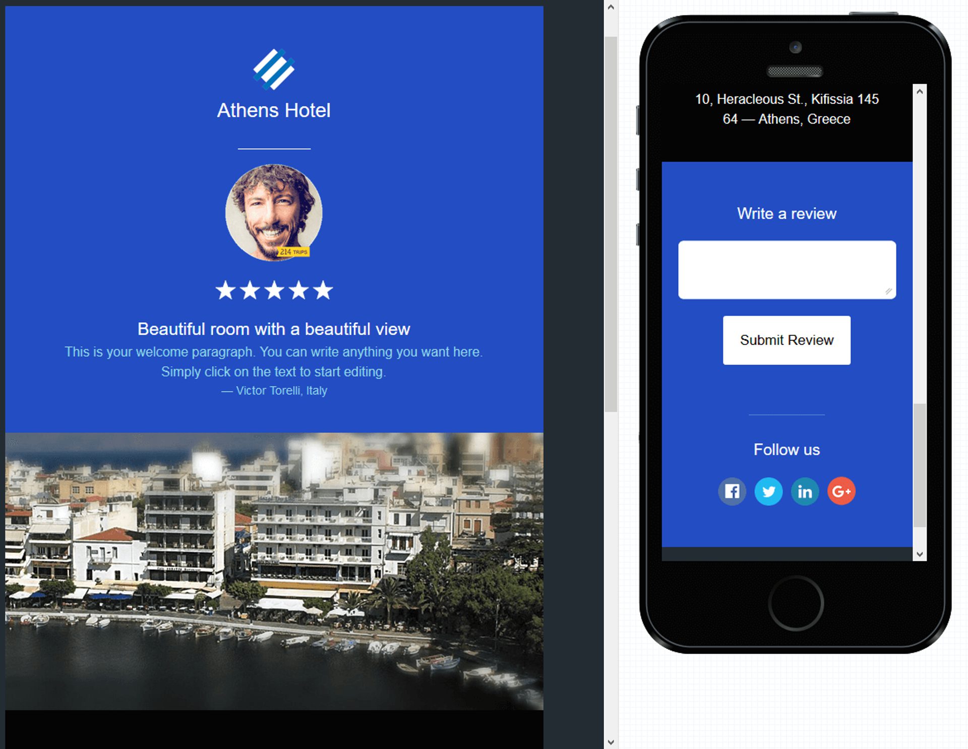 Como você pode ver, neste exemplo, quem está lendo recebe um convite para deixar a sua avaliação sobre o quarto de hotel.