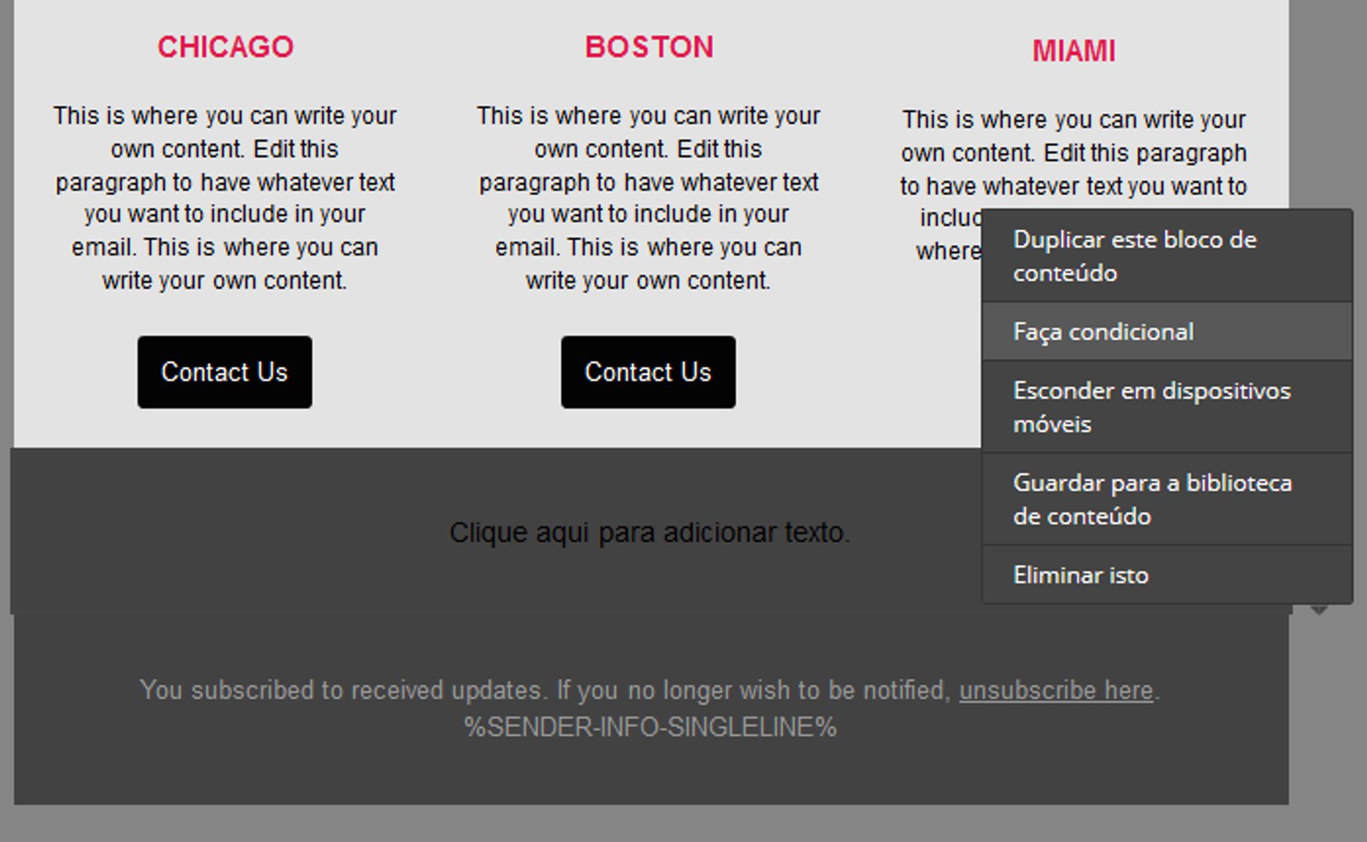 Confira a seguir um dos modelos de newsletter mais utilizados na ActiveCampaign: