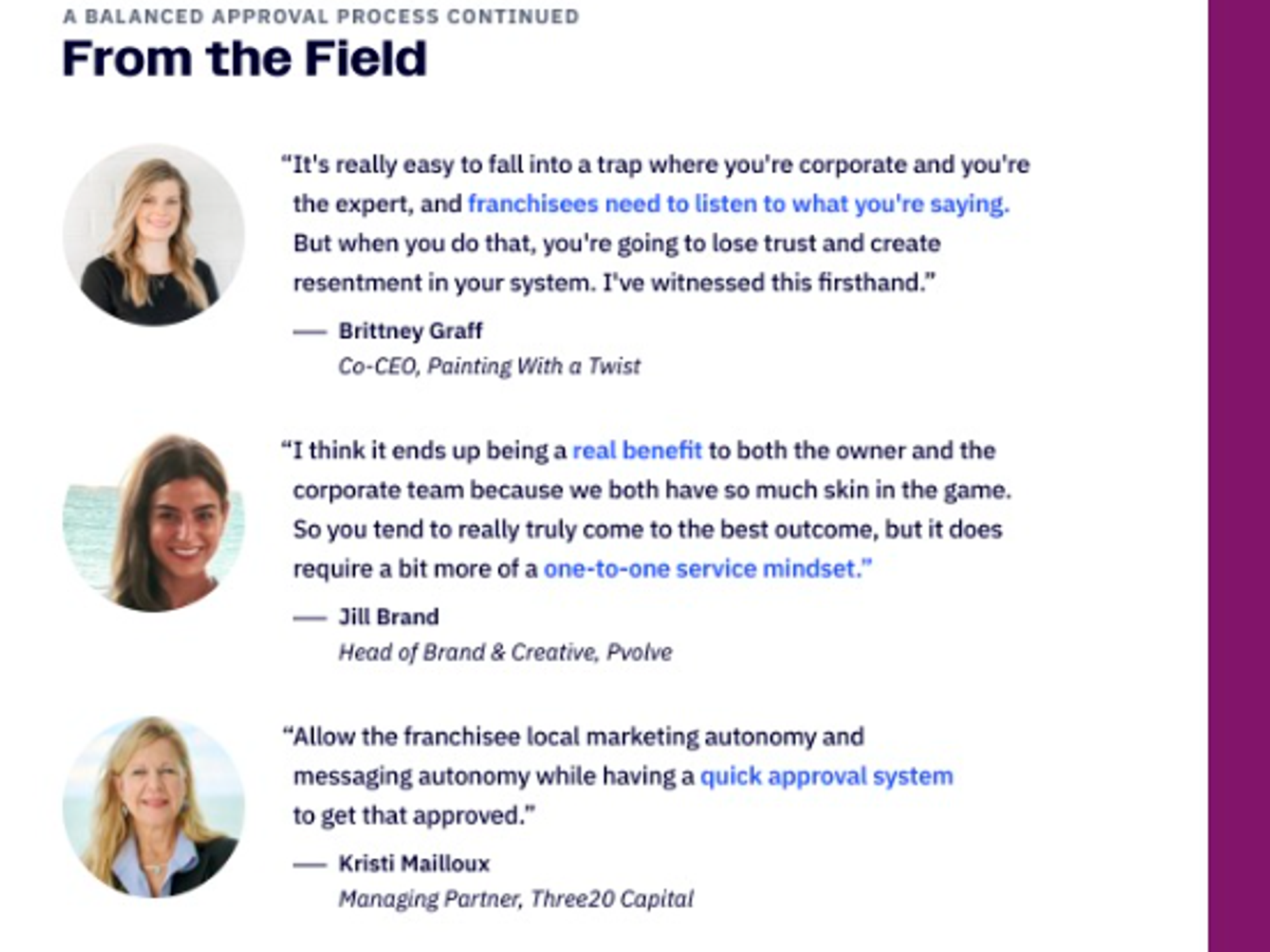 Know when you should weigh in and when you should facilitate your franchise owner’s creativity.