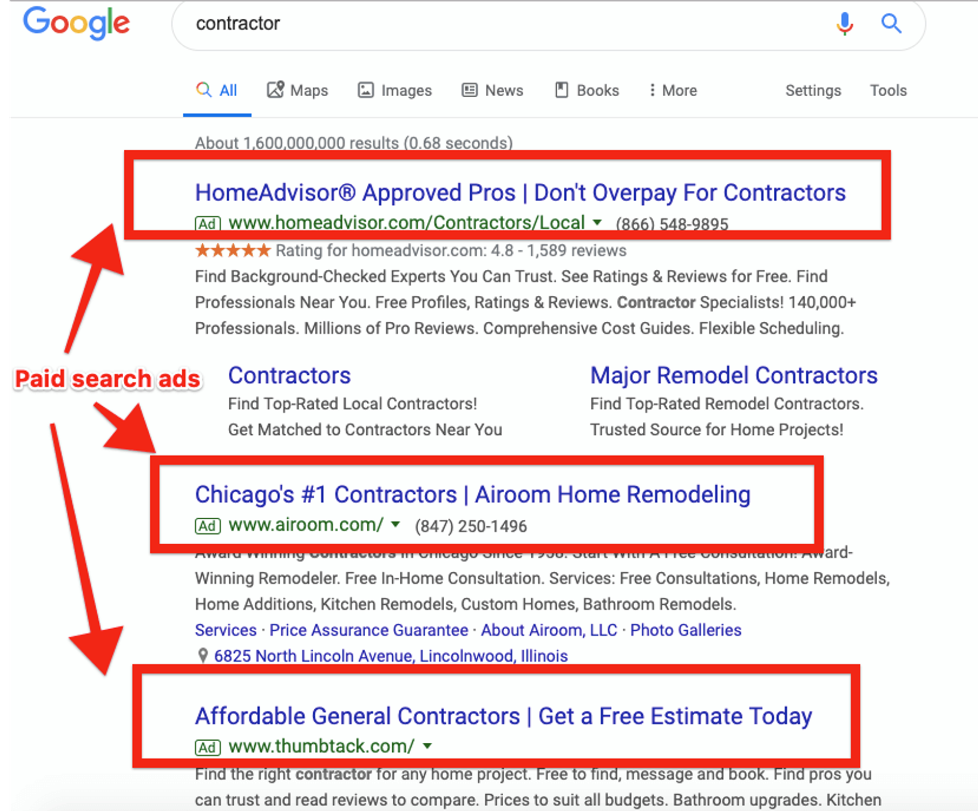 Paid search ads look like this: