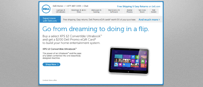 Dell sent an email campaign to drive traffic to a specific landing page for their new computer, the XPS 12 Convertible Ultrabook.