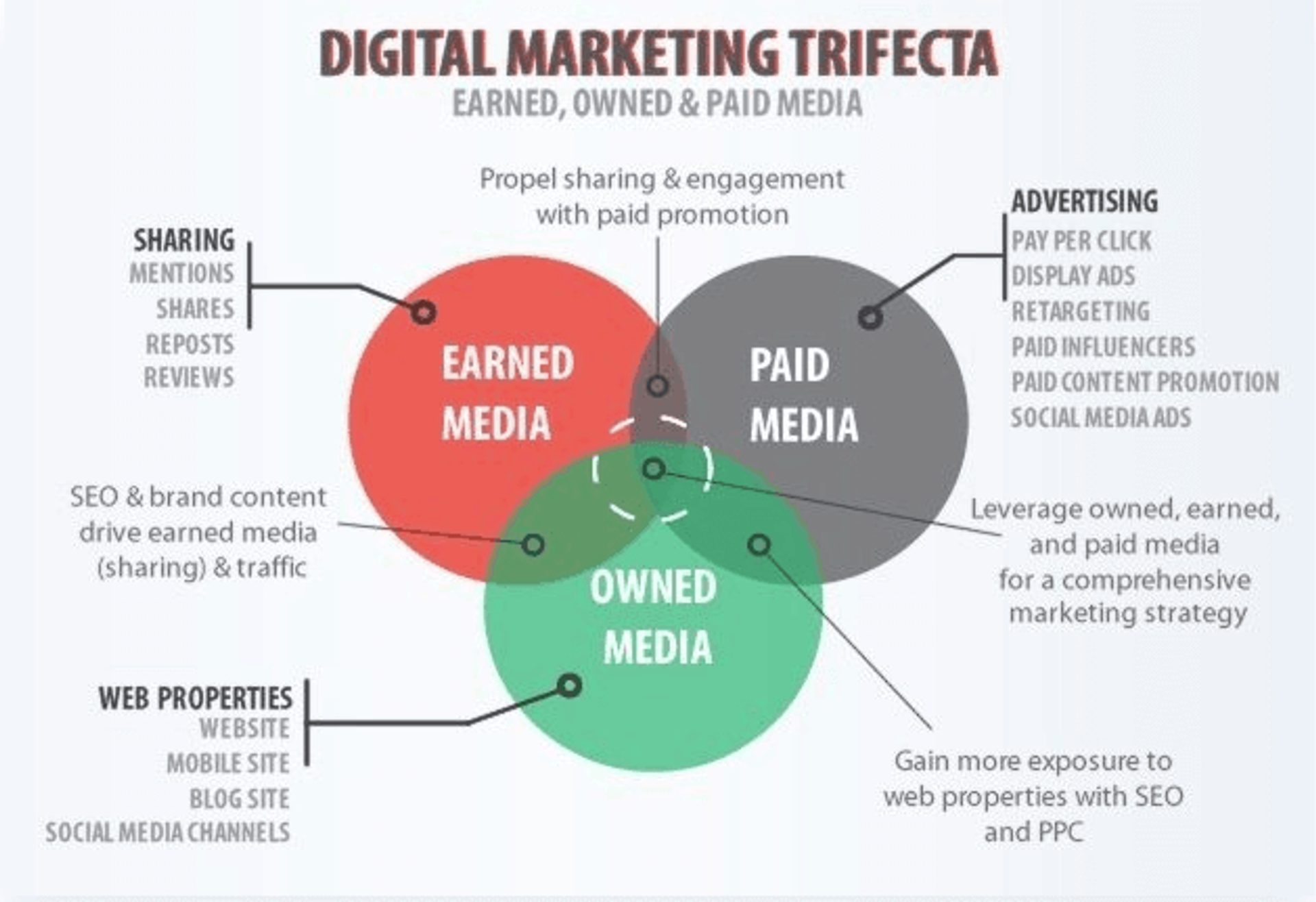Here’s a snapshot view of your options, otherwise known as the digital marketing trifecta: