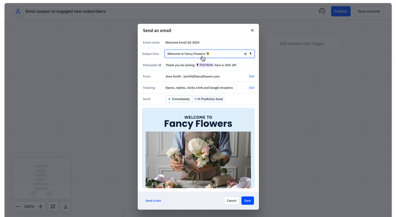 - In-context editing of sending actions: We’ve updating our sending actions so you can edit them directly within the automation builder without navigating away from your workflow. This in-context editing streamlines your process for automating emails, SMS messages, and internal notifications, allowing you to stay focused and maintain your creative flow within the automation builder.
