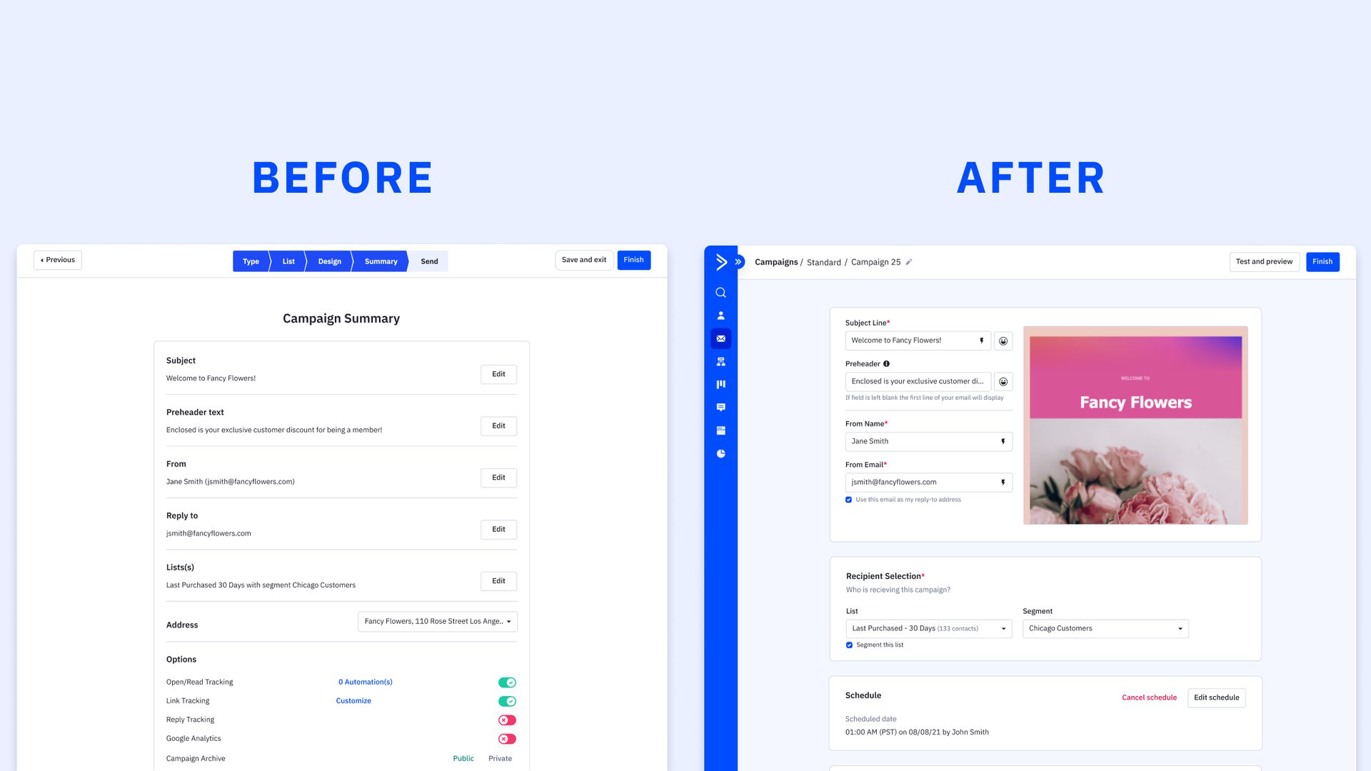 In the world of marketing, time is of the essence, and efficiency is key. Crafting an impactful email campaign is no exception. That’s why we’re excited to announce our current work on the new campaign workflow that can help streamline and expedite your email creation process. In this blog, we'll take you on a journey through the "before" and "after" of our new workflow, showcasing how it transforms your experience, boosts productivity, and empowers you to create campaigns that resonate with your audience like never before. Coming soon in October, check out this sneak peek and stay tuned!