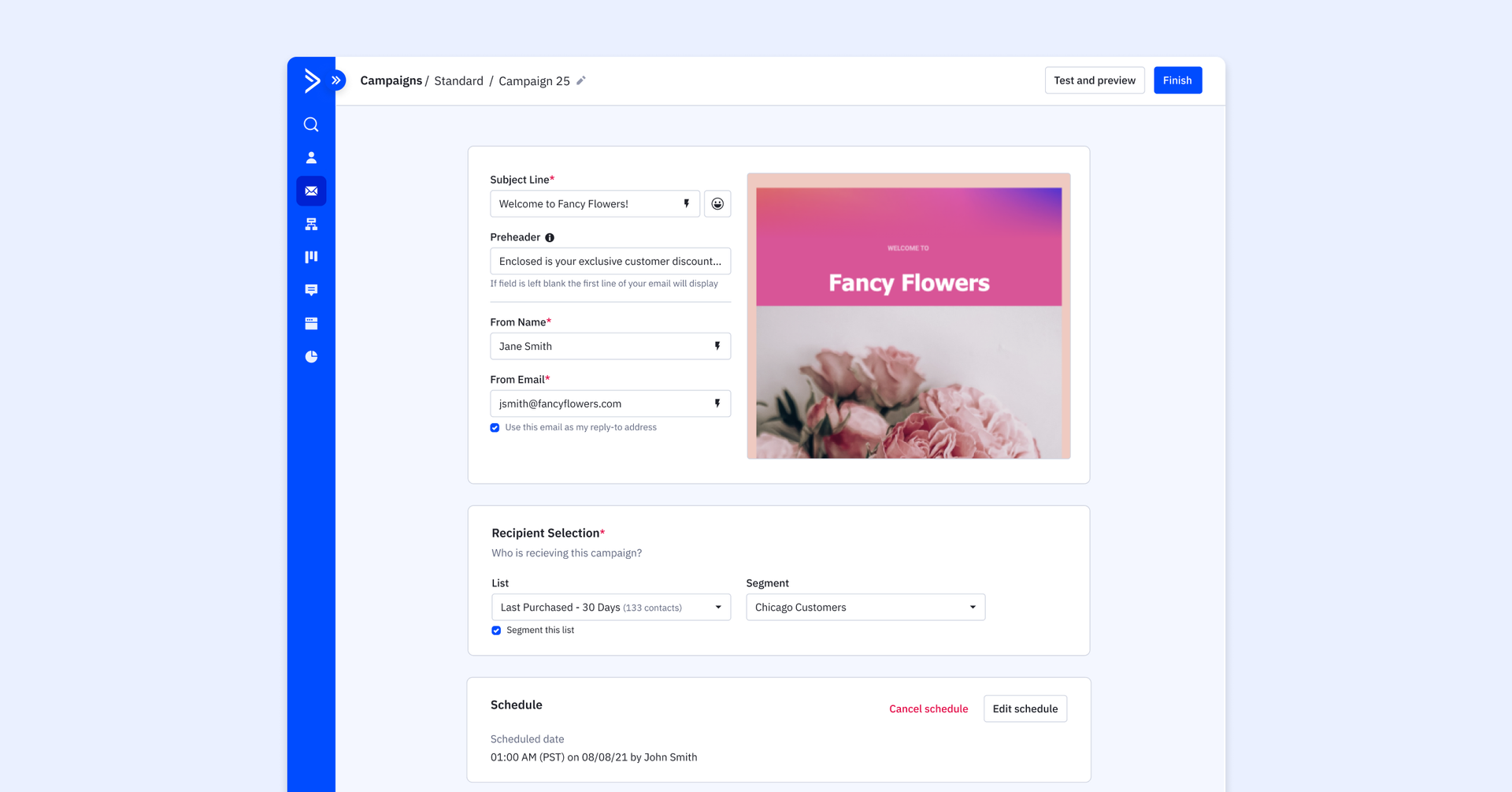 More flexibility: Experiment with designs, modify settings, and optimize audience segments with ease. No more toggling between different pages to handle various campaign aspects. From crafting the perfect subject line to previewing your email design to selecting recipients, manage your entire campaign journey in a single, cohesive space.