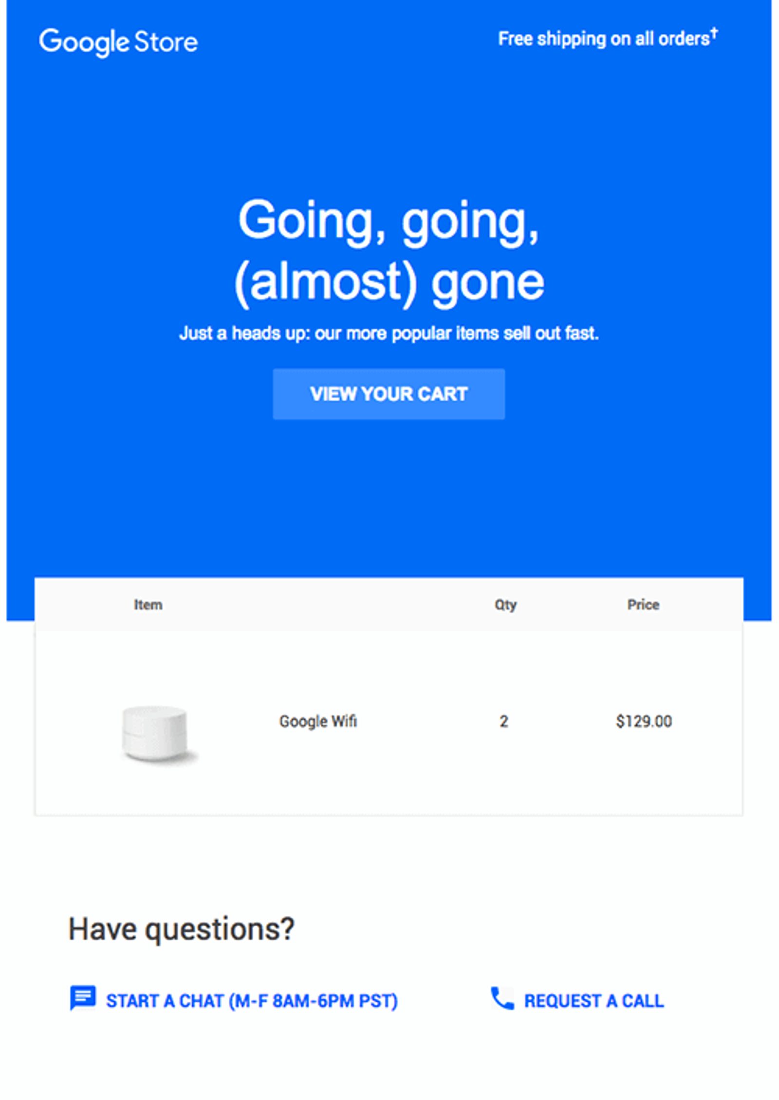 An abandoned cart email is meant for the 7 out of 10 shoppers who leave without finishing the checkout process. Doing this can often recover around 10% of lost revenue.