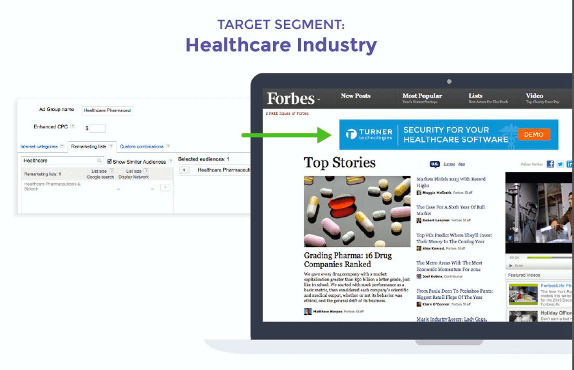 Ads can be triggered based on specific account users, like in the above example from Visa, or by account industry, such as in the display ad by Turner Technologies below.