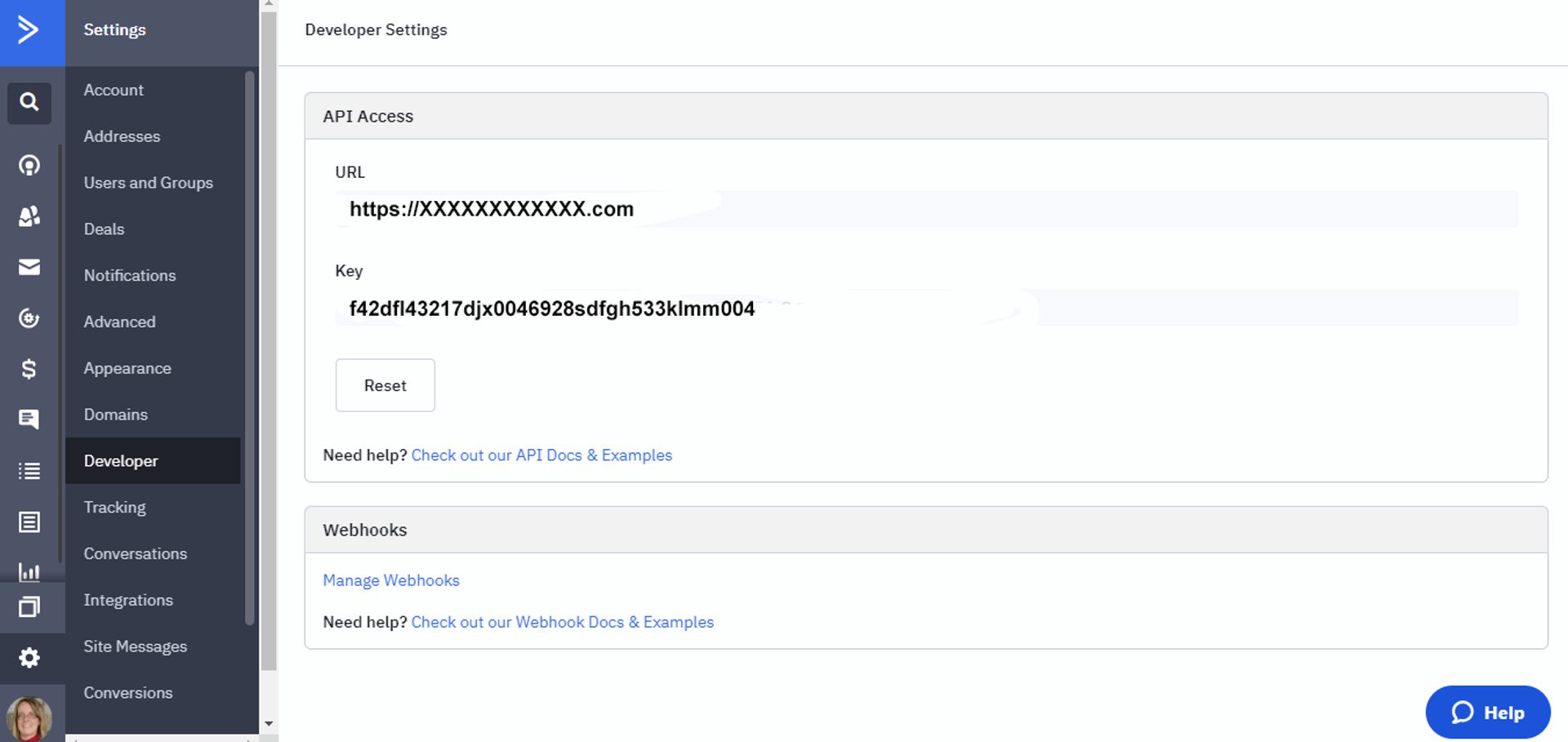 The next step asks for your ActiveCampaign API key and URL, which you’ll find in your ActiveCampaign Settings under Developer.