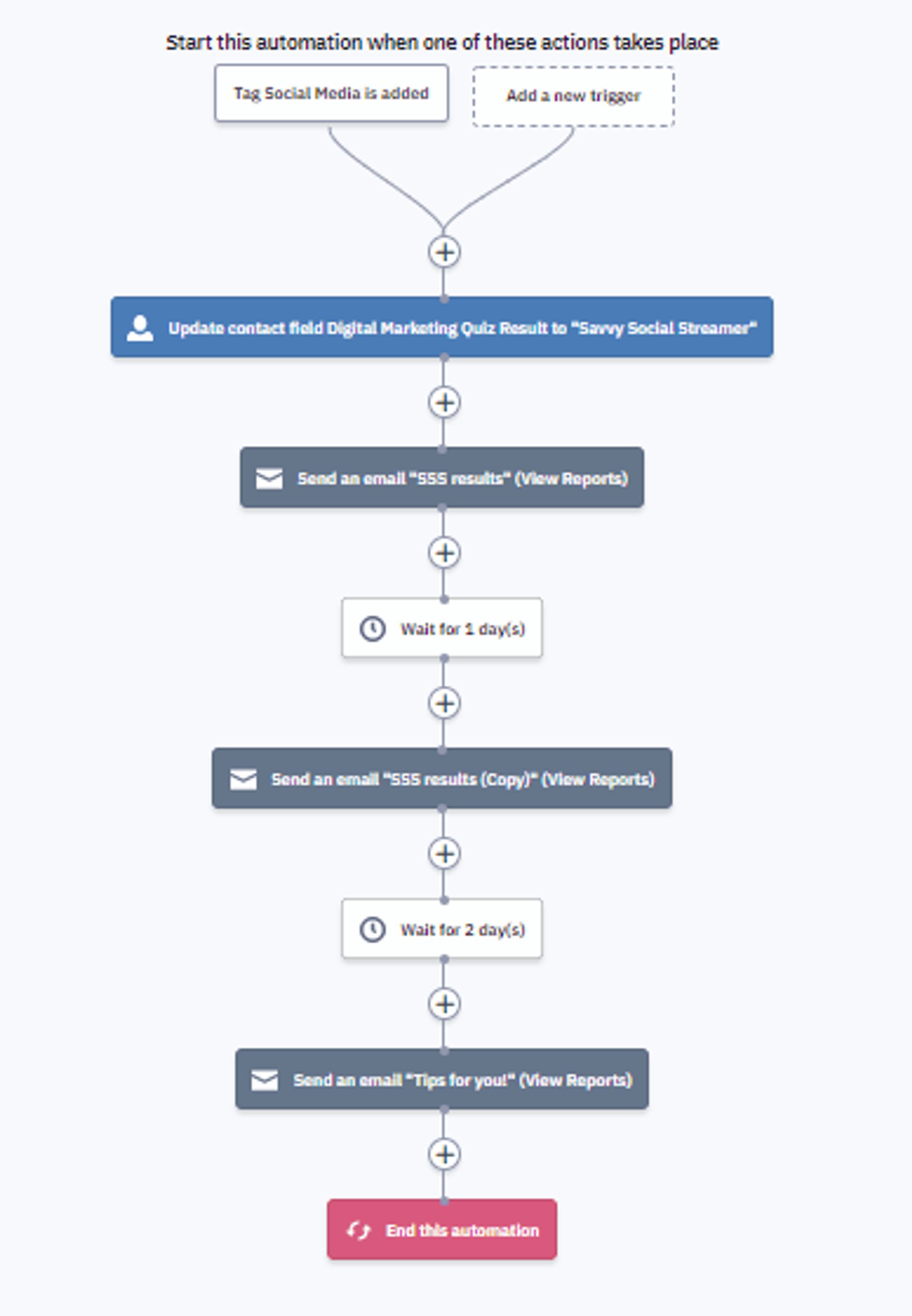 As you can see, each quiz result becomes a trigger for automations in ActiveCampaign.