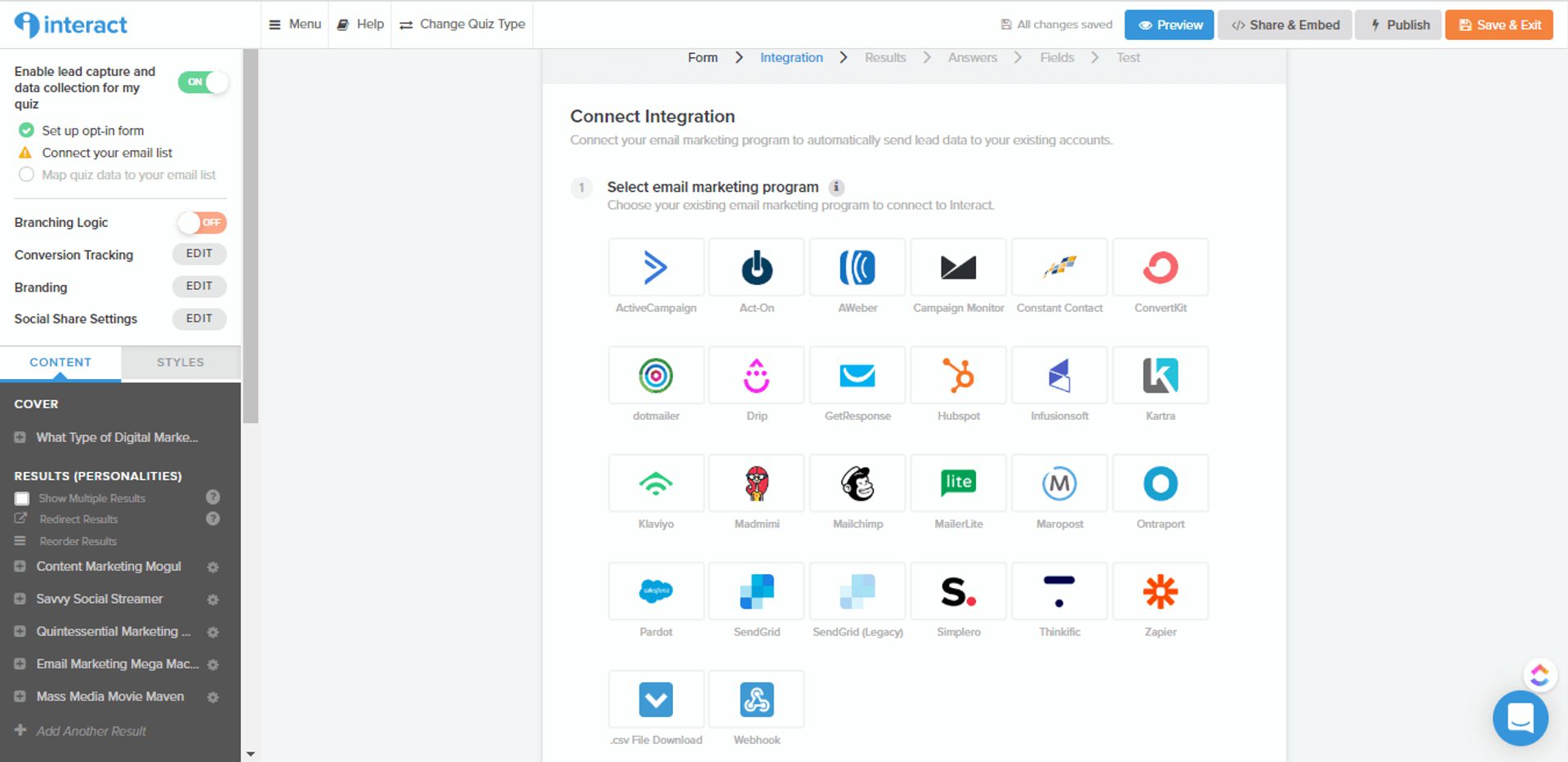 To show you how to set up the integration between Interact and ActiveCampaign, I created a personality quiz to help people discover what type of digital marketer they are.