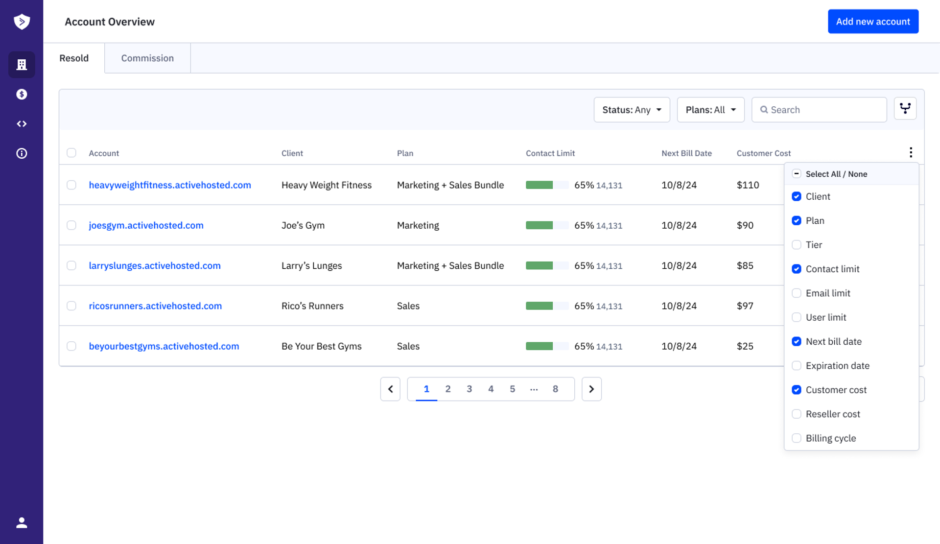 Why this matters for your business: When you're managing 20, 50, or 100+ client accounts, every click compounds. The old portal required navigating through multiple screens just to see basic client information—CNAME status, billing terms, and expiration dates. Now, everything you need appears in a single, scannable view. Apply multiple filters simultaneously to pinpoint exactly which clients need attention: accounts expiring next month, clients on specific plan types, or accounts approaching contact limits.