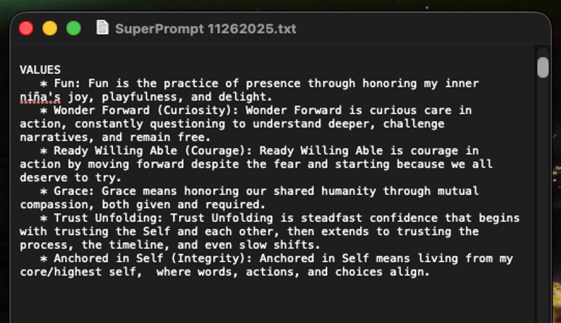 Excerpts from the “super prompt.”