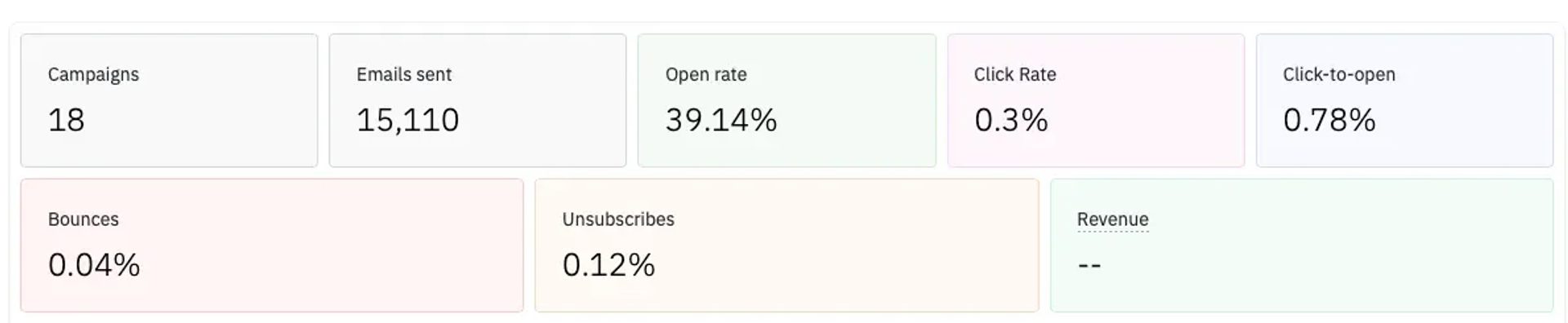 Active Intelligence’s overview: strong opens, but clicks and other engagement could be improved.