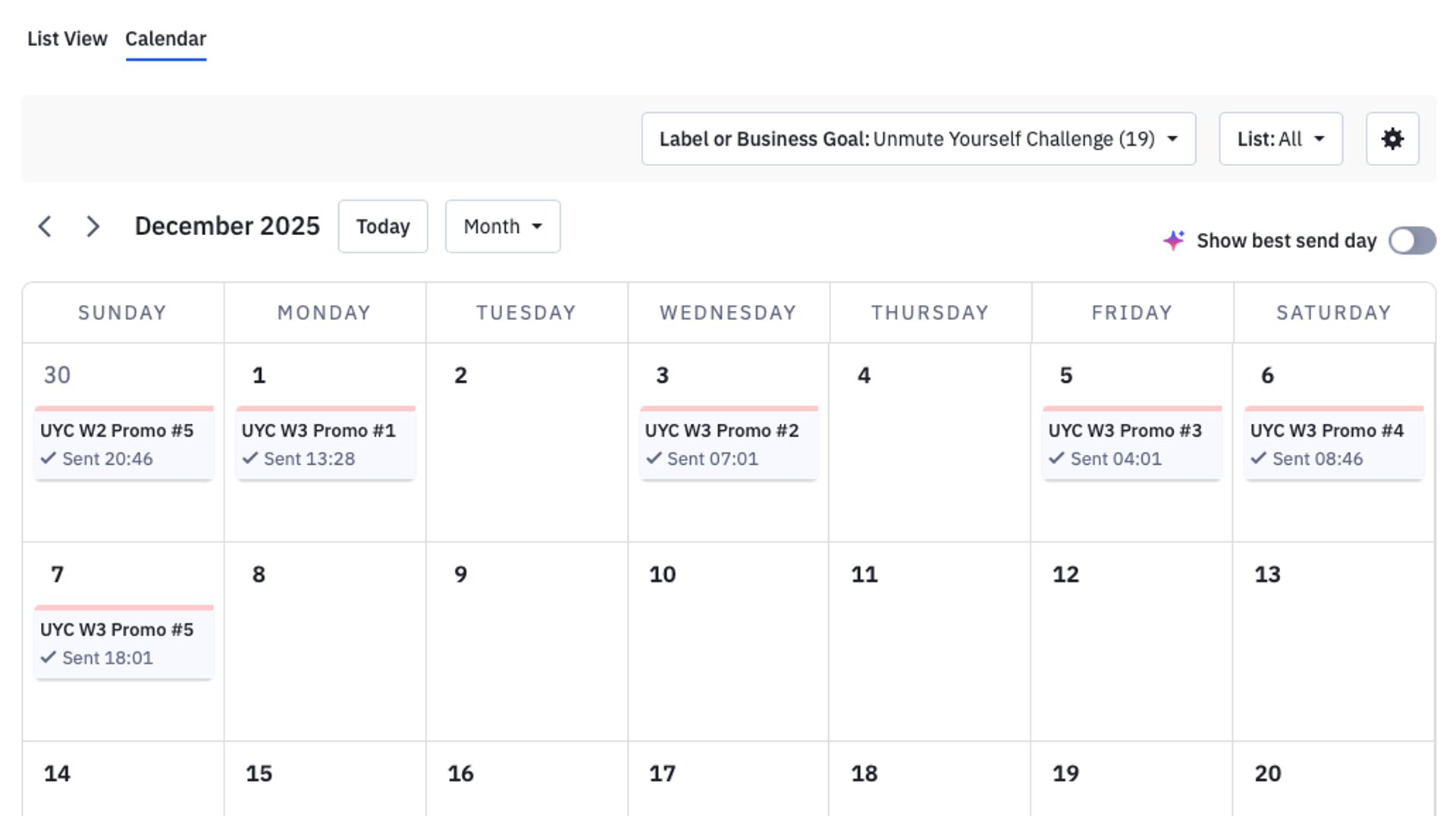A full content calendar in ActiveCampaign