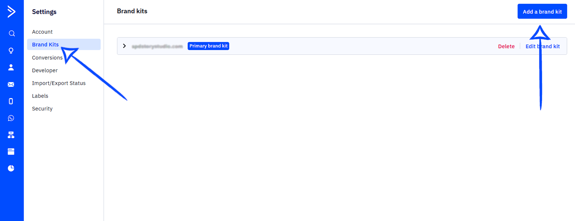 Log in to your account, click the Settings icon, and then select “Brand Kits” to add a new one.