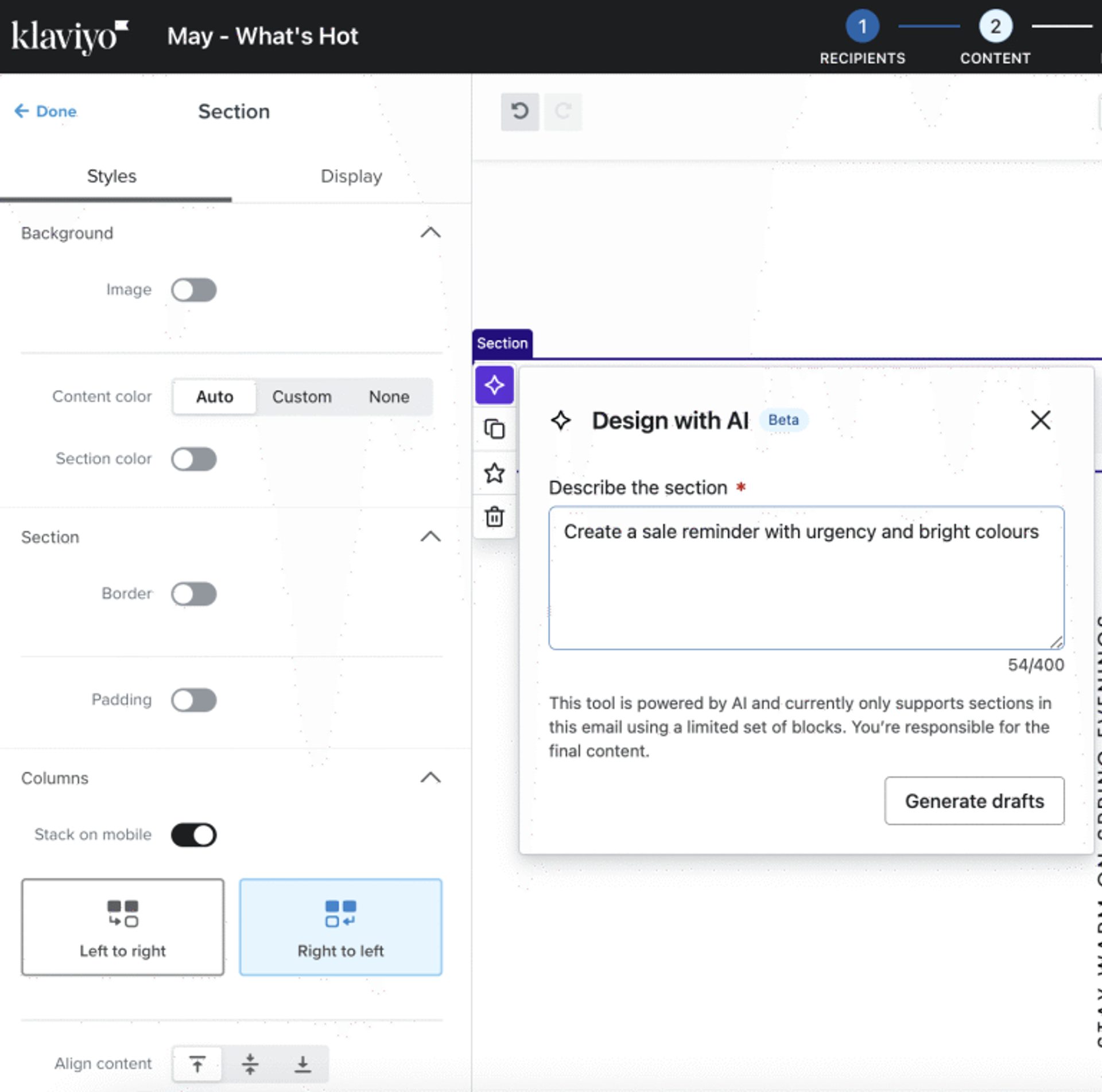 • Generative copy: Need inspiration for an email? AI can generate compelling subject lines, calls to action, and even complete email drafts with just a few prompts.