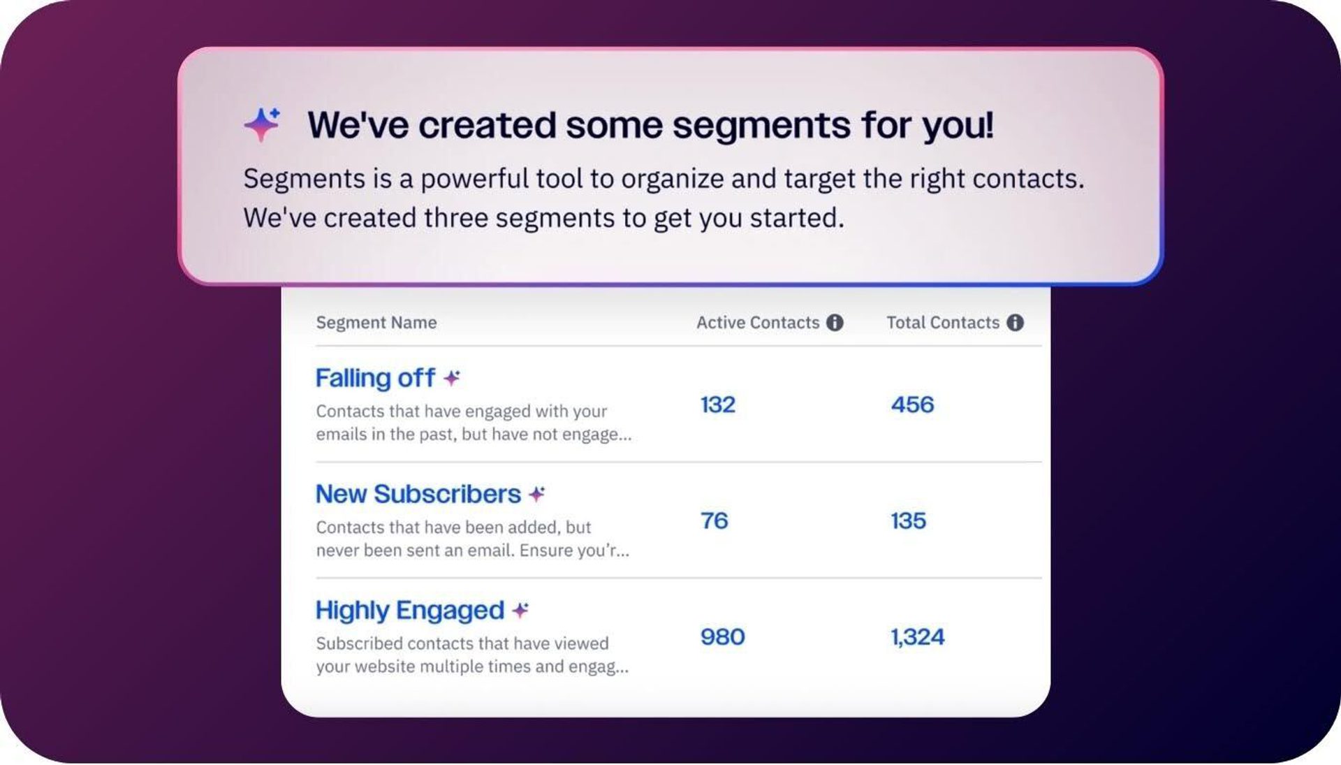 - AI-Suggested Segments automatically identify high-value and at-risk audiences your manual filters would likely miss.