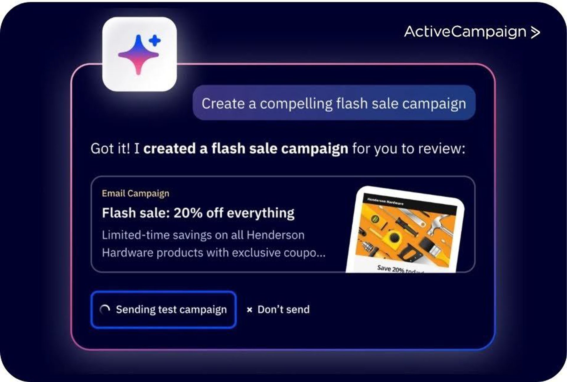 Take a look at the product tour below to see how easily Active Intelligence can create custom, on-brand campaigns: