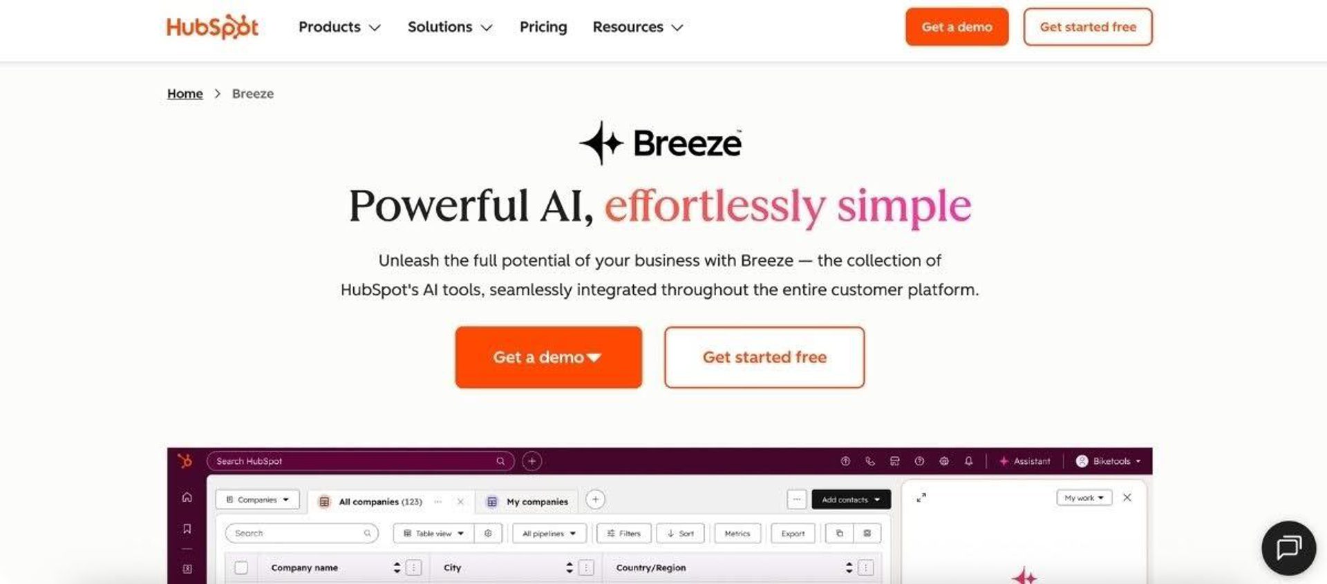 HubSpot's AI also provides genuine breadth. Breeze comprises three layers: