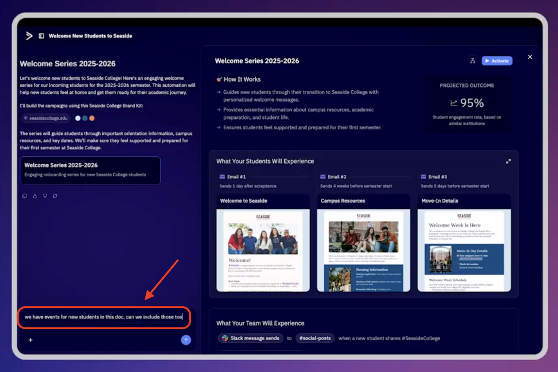 ActiveCampaign’s Product and Design leaders walk through a fictional example of how Seaside College can use AI agents to create personalized messages for each student in minutes.