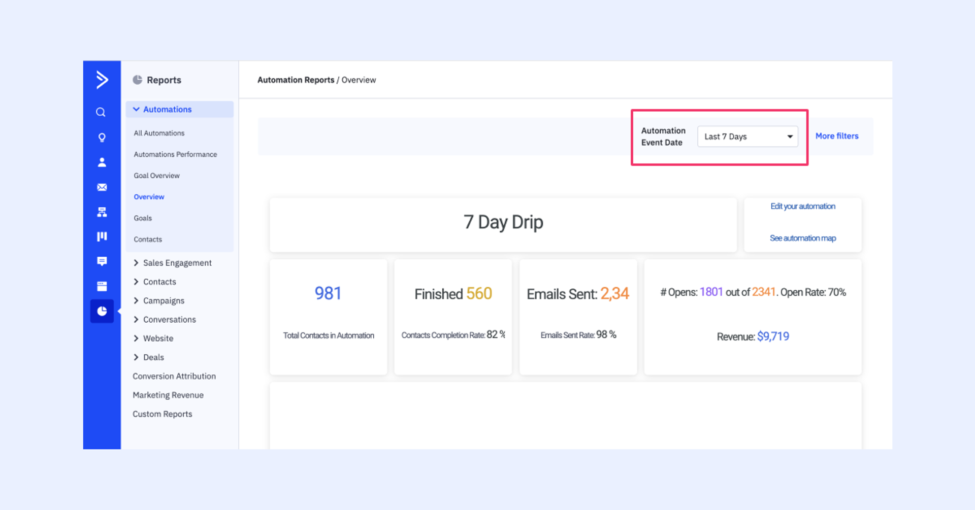 Use our customizable date filter on your automation overview report for deeper context into automation performance over time. This means you now can spot performance trends and take actions needed to increase your automation performance.