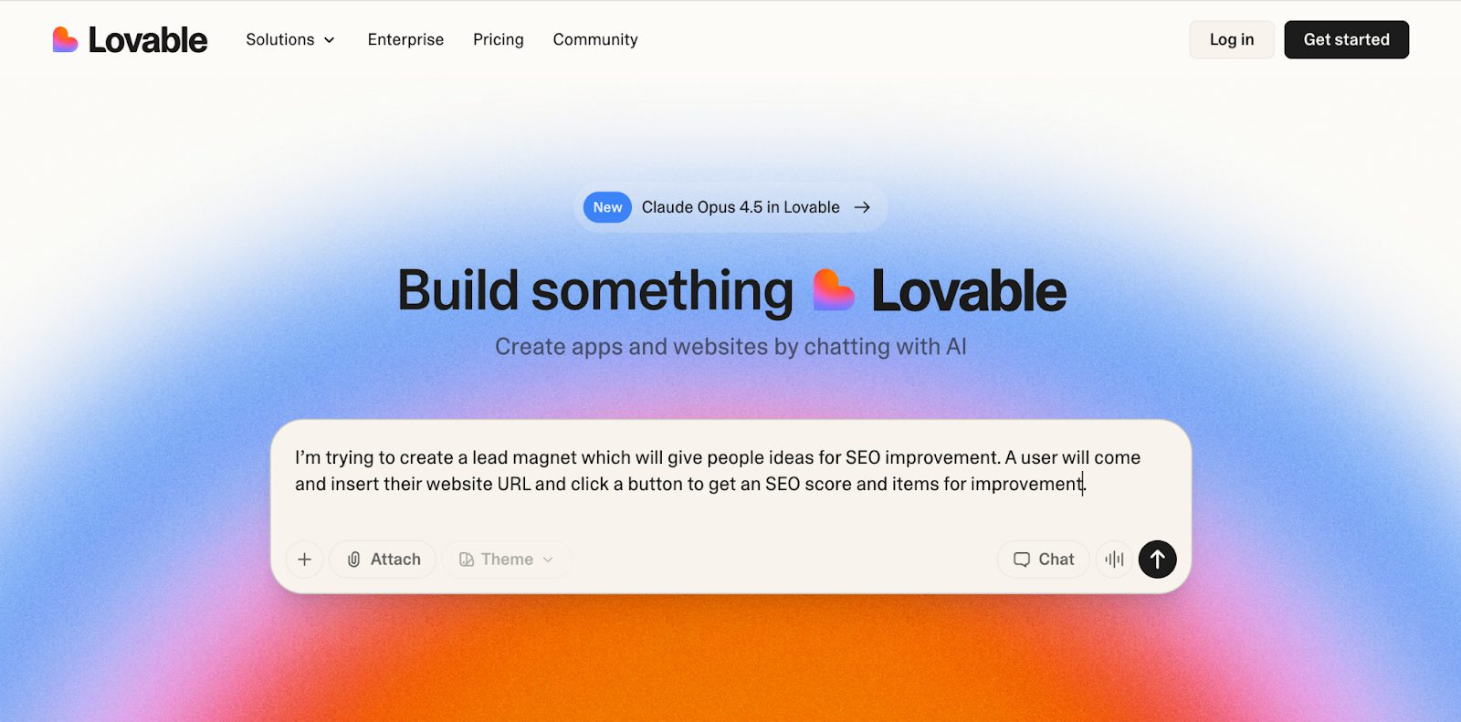 With that simple information, you can start to explain to Lovable in simple language what you want your web app to look like: “I’m trying to create a lead magnet which will perform X function. A user will come and insert Y input and click a button to get Z output.” You could even ask GPT to write the training data based on your conversation to drop into Lovable.