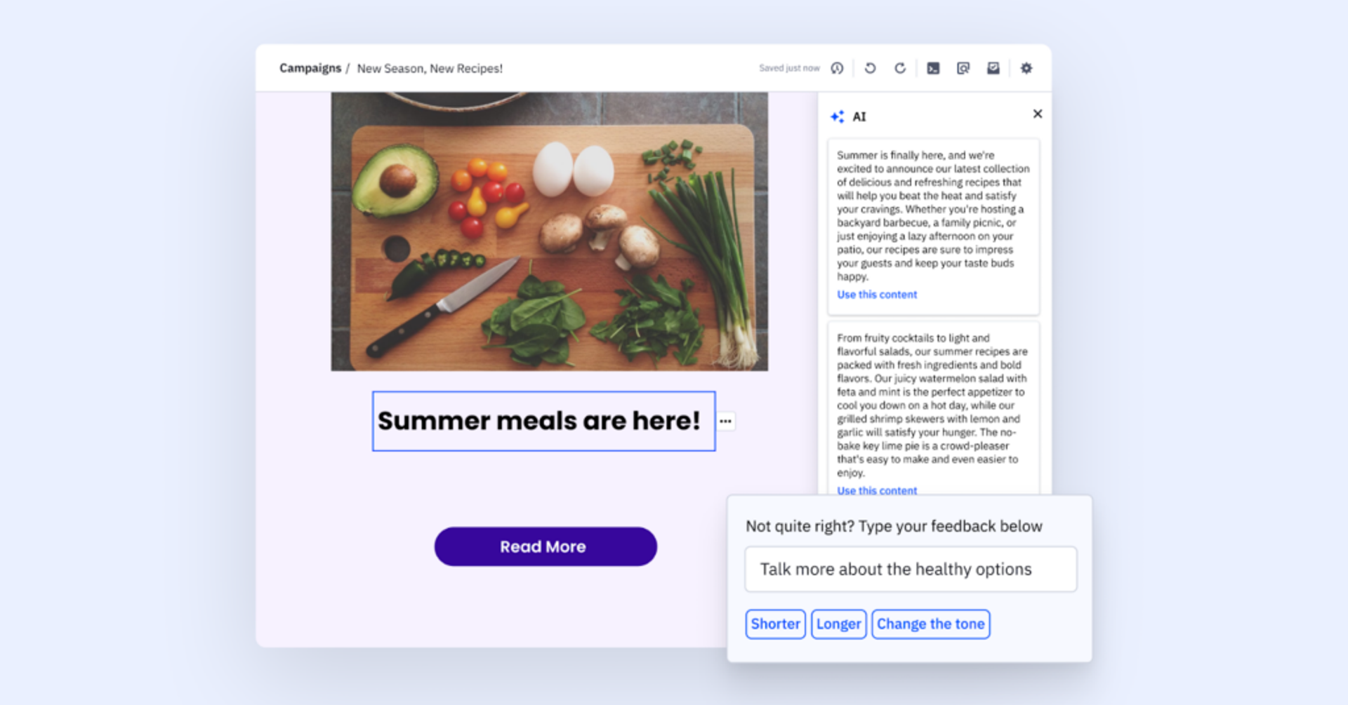 We’re also thinking about how to create entire campaigns from one prompt, including generating a subject line, preheader, template, content, and CTA: