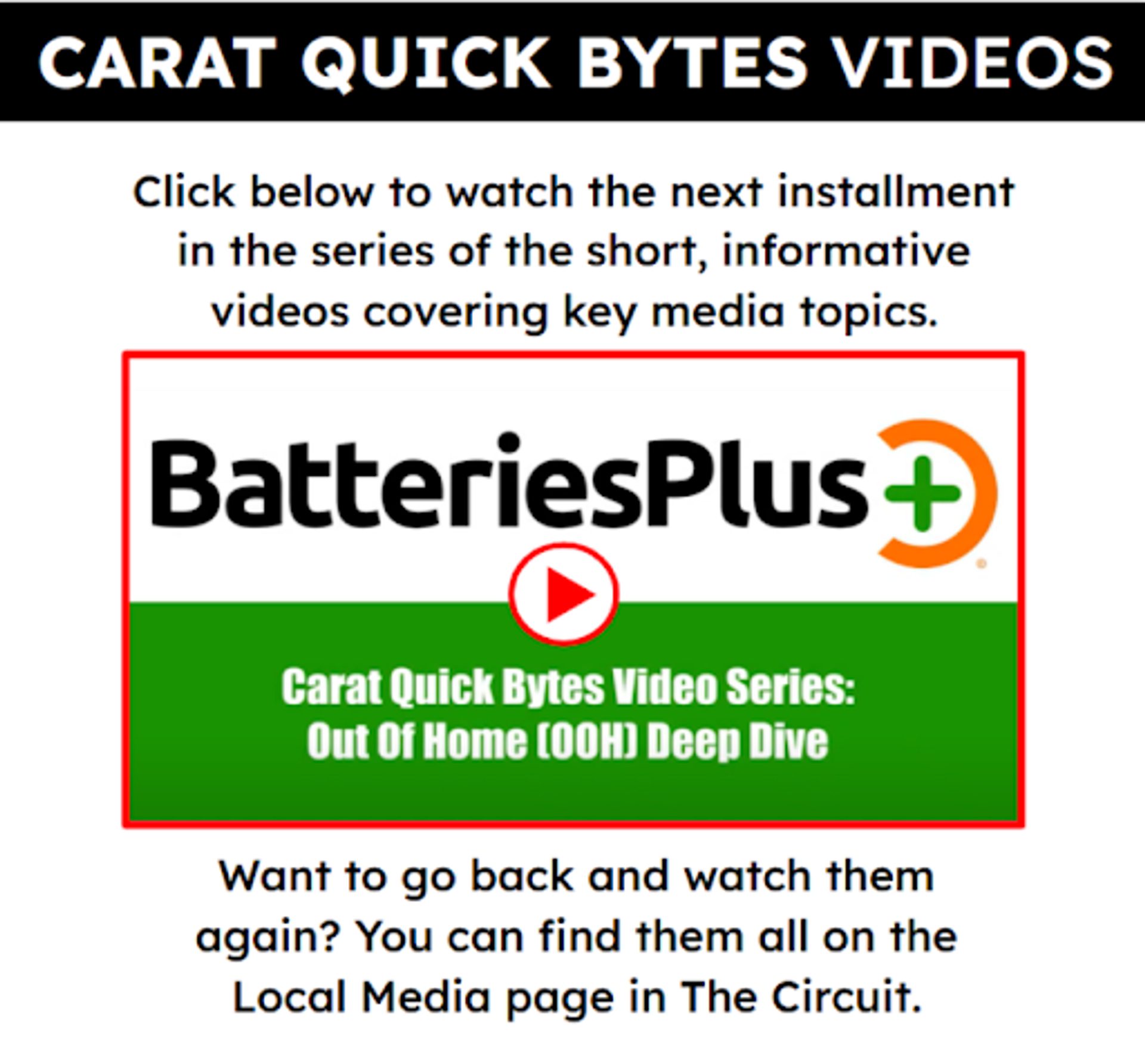 Sample newsletter section with a video explaining the Batteries Plus OOH strategy