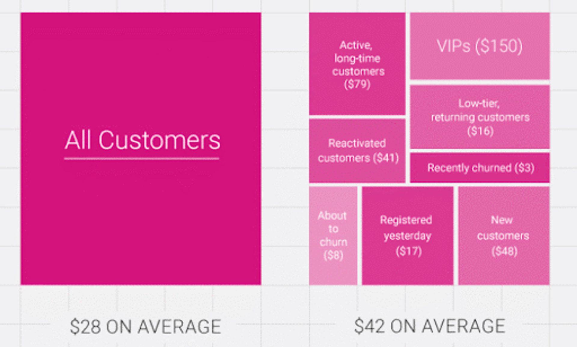 When it comes to behavioral segments, you can get pretty nitty-gritty with your sales and near-sales data.And that’s a good thing, because the more granular your groups are, the better. That’s what Optimove discovered when their average customer order value went from $28 to $42 after segmenting their audience into behavioral-based groups.
