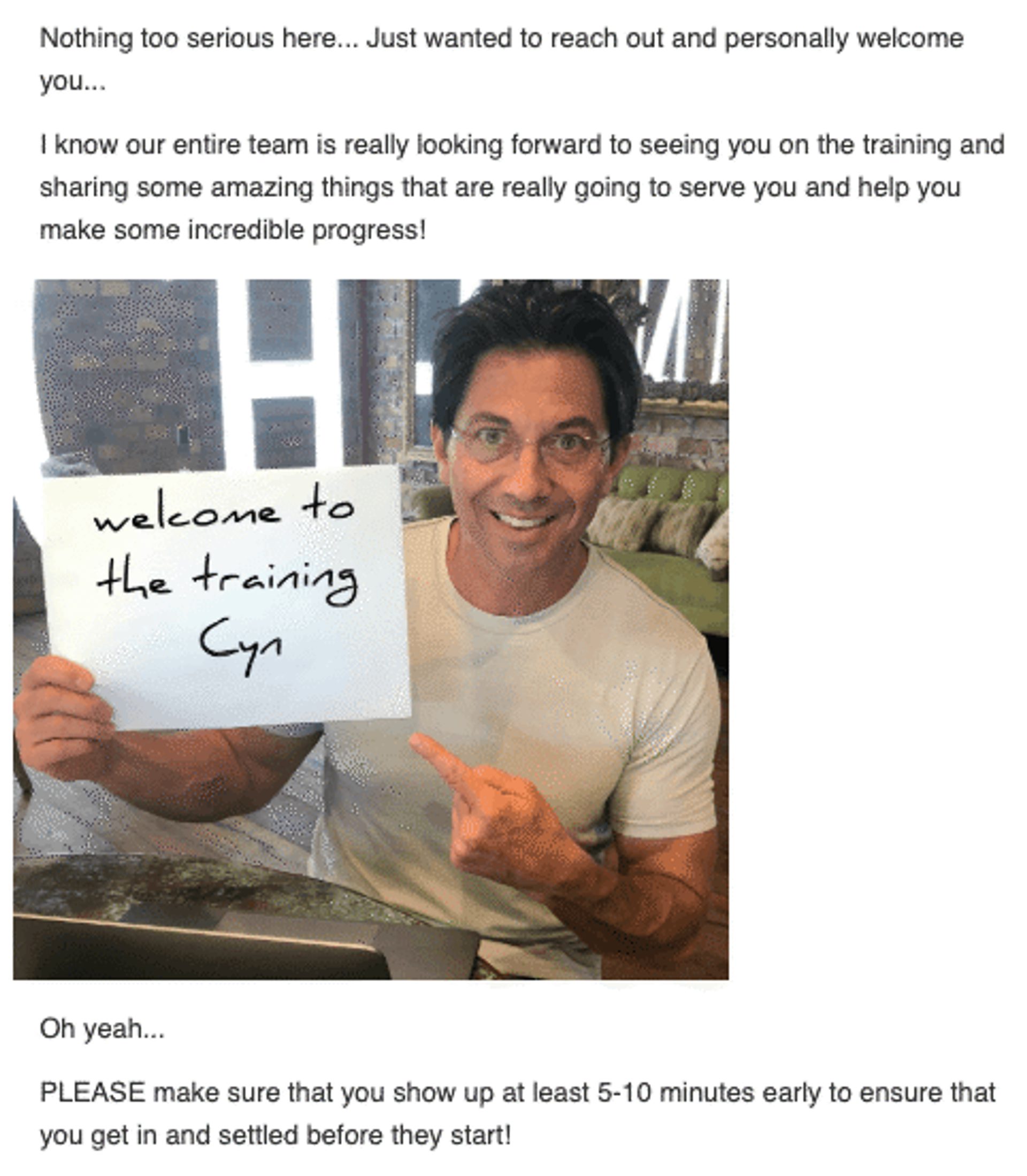 You can take it a step further and include personalized graphics, such as in this email I received after registering for a webinar with Dean Graziosi: