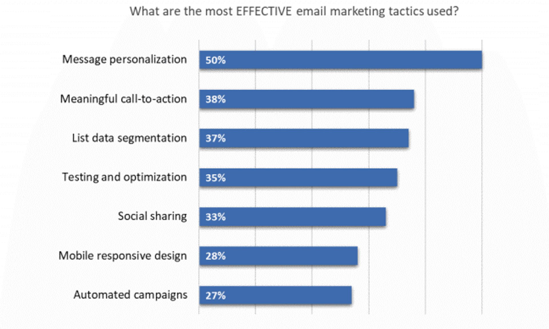 Another copywriting tactic is to personalize your message as much as possible. Personalizing your email messages is the most effective sales email tactic and used by 50% of marketing influencers.