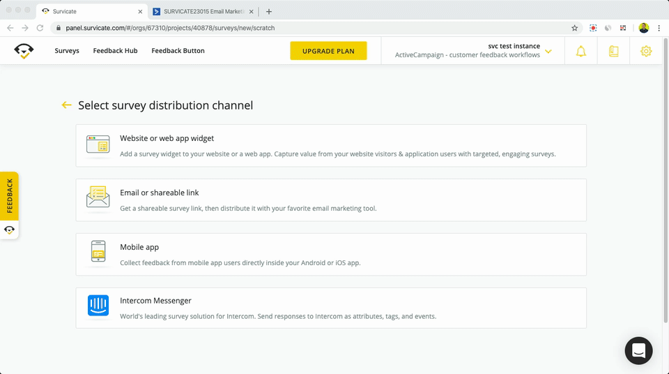 - Log in to your Survicate account and connect the integration directly inside ActiveCampaign