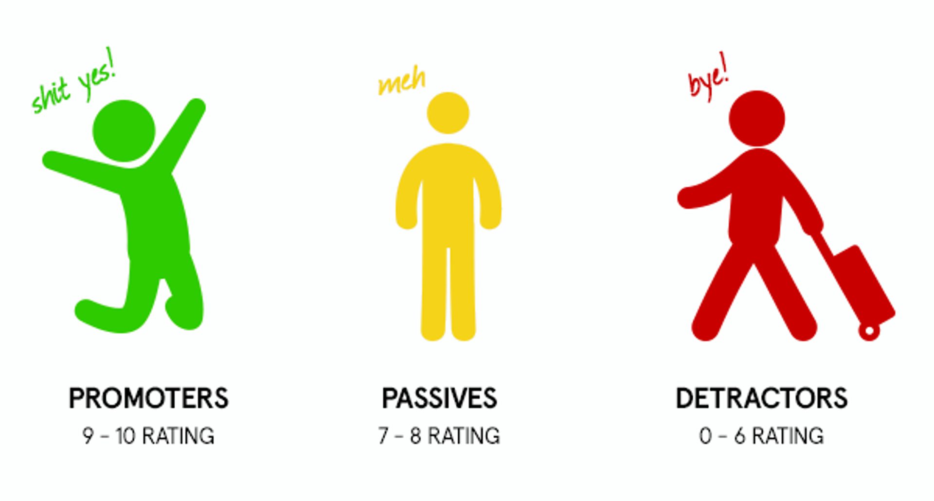 NPS survey respondents fall into 3 categories based on the score they give. (Image source: Usability Hour)