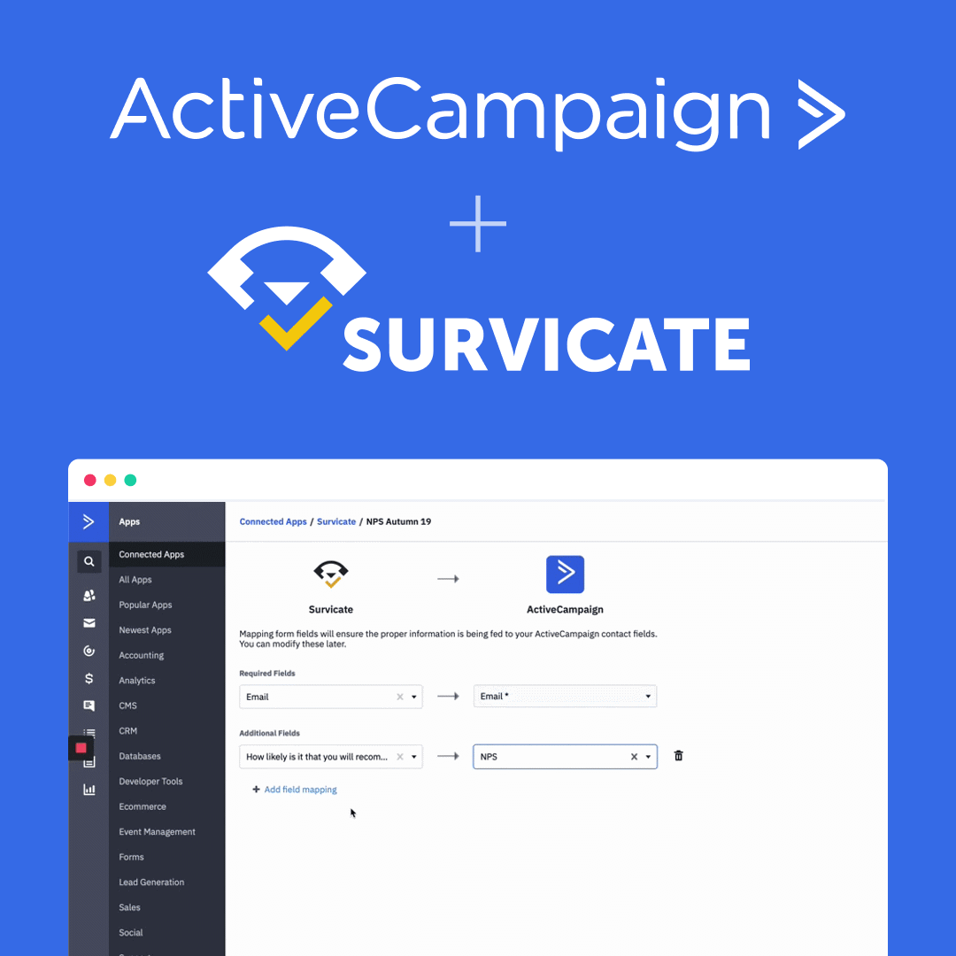 You can map Survicate survey responses to ActiveCampaign fields — right inside ActiveCampaign
