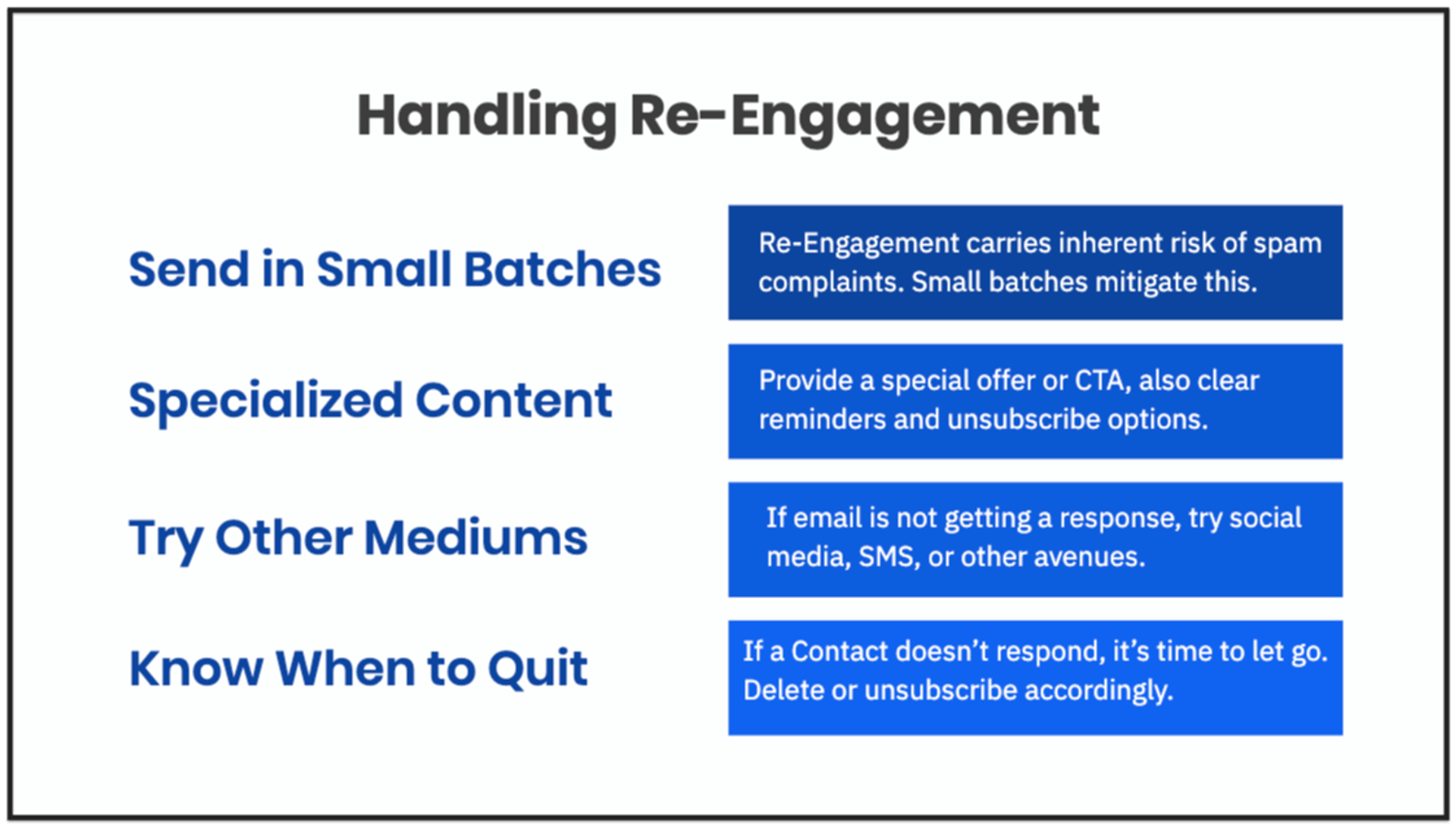 - Attempt to re-engage unengaged contacts