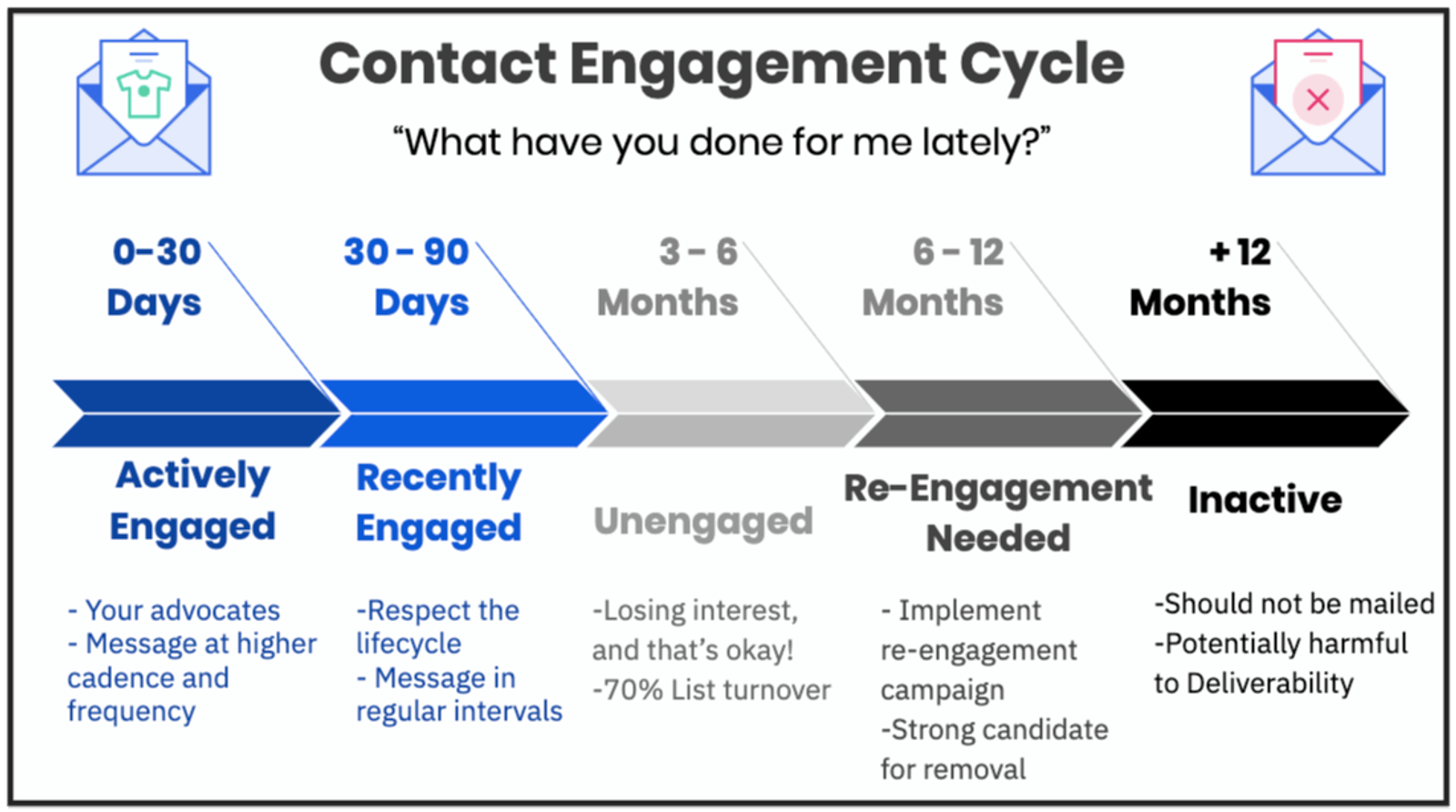 The contact engagement cycle is the natural progression of a contact’s interactions with your email content.