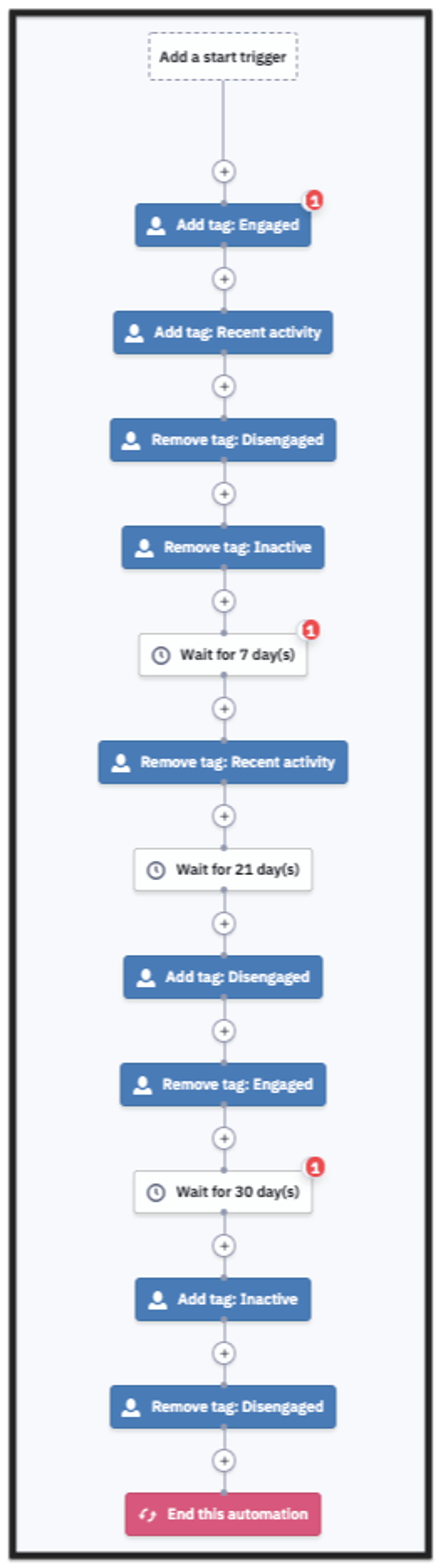 When used with the automation above, you’ll always be up to date with who your engaged contacts are! This automation is available for free here.