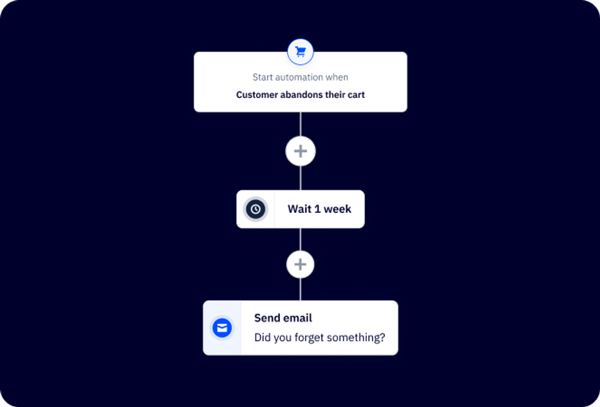 Shoppers abandon carts all the time, but that doesn’t mean the sale is lost. This flow reminds them to complete their purchase.