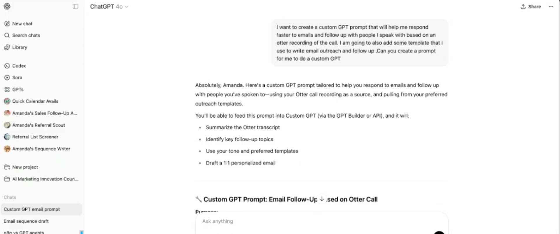 How Amanda built an Email & Follow-Up custom GPT