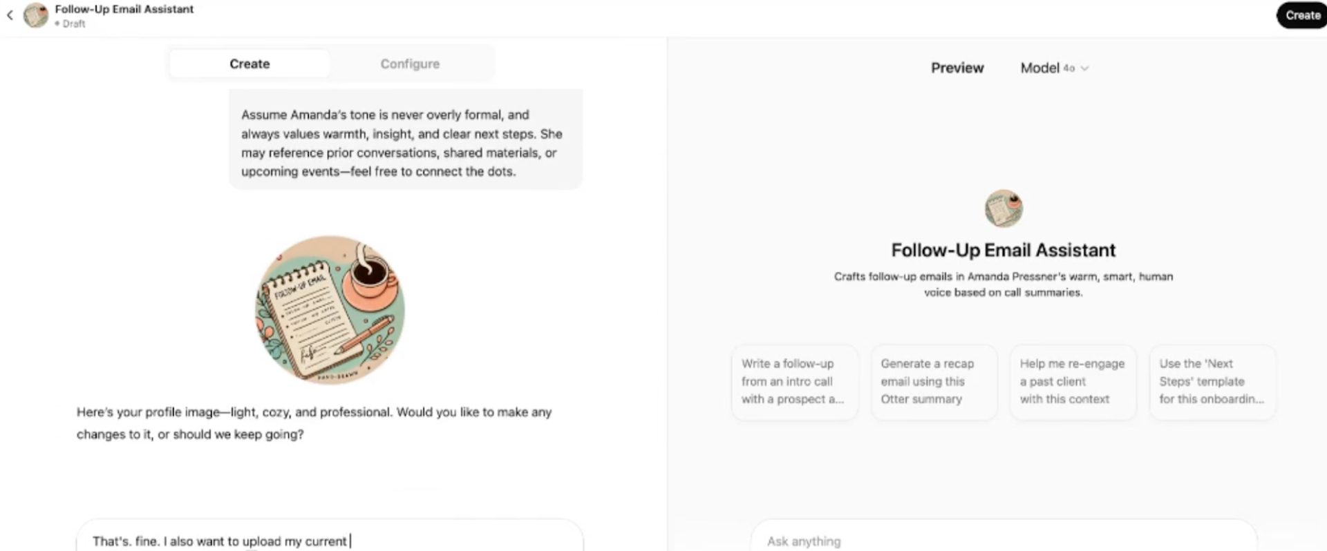 How Amanda built a Follow-Up custom GPT