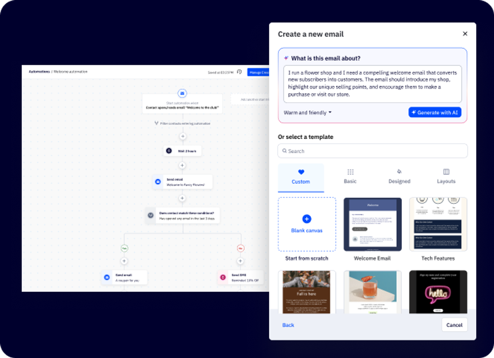 - Automation that works for you: Build personalized drag-and-drop customer journeys with automated workflows that engage subscribers at the perfect moment, whether just joining your list or returning for a repeat purchase.