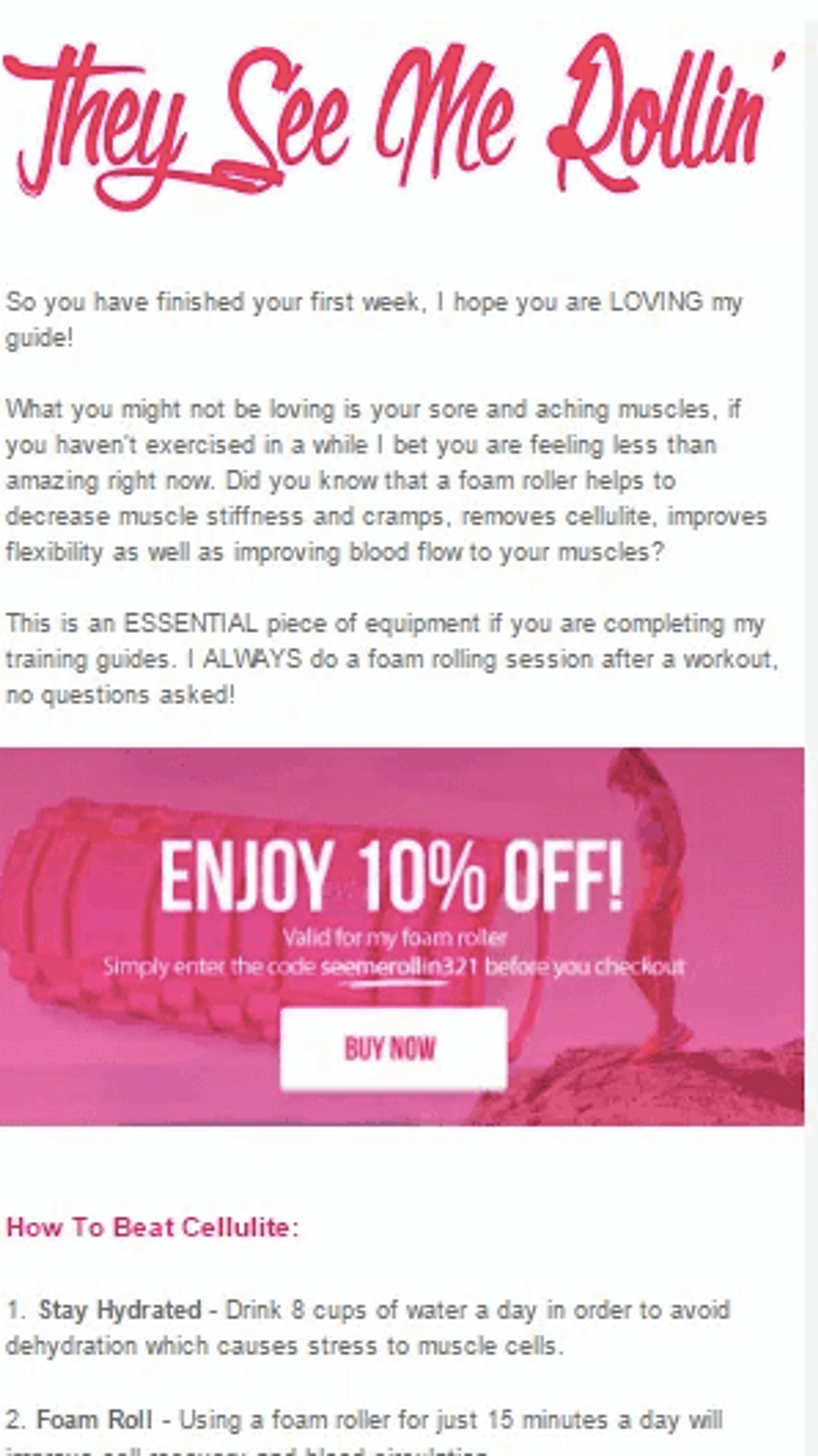 “What you might not be loving is your sore and aching muscles if you haven’t exercised in a while. I bet you are feeling less than amazing right now. Did you know that a foam roller helps to decrease muscle stiffness and cramps, removes cellulite, improves flexibility as well, as improving blood flow to your muscles?”