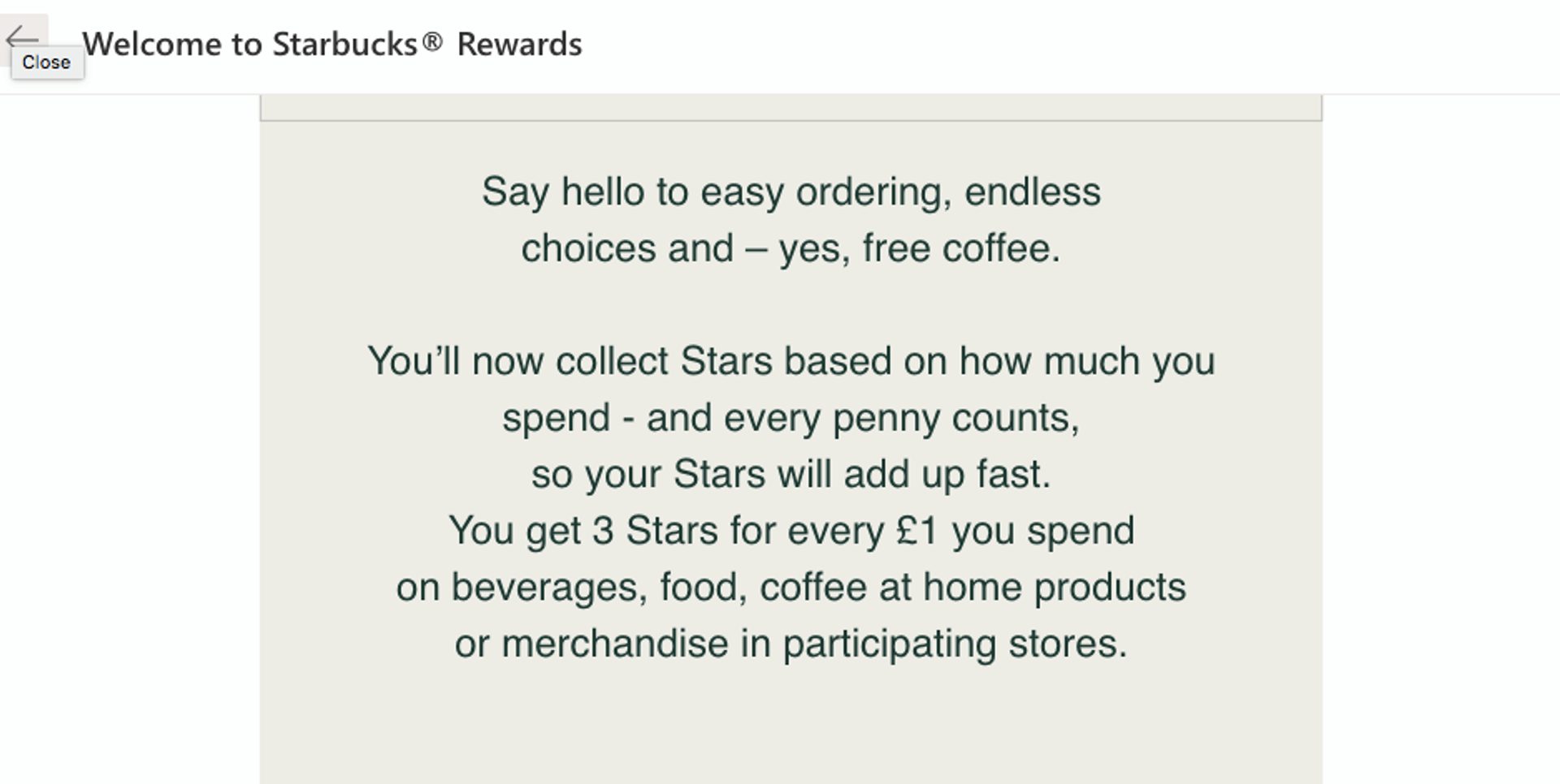 The welcome email from Starbucks greets you by name and gets the tone just right. It’s friendly and welcoming, but also informative.