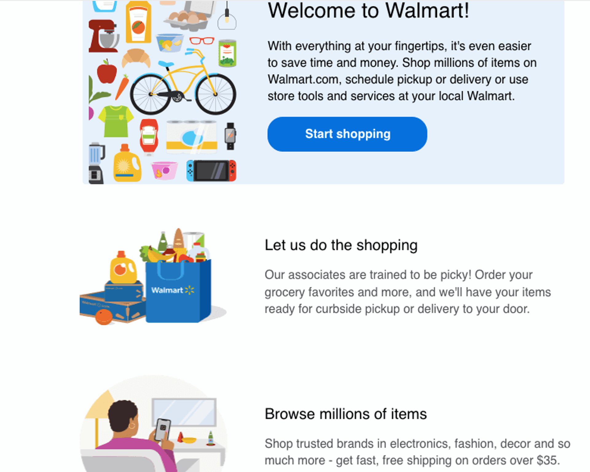 After signing up for an account with Walmart, customers will receive a welcome email jam-packed with useful information.