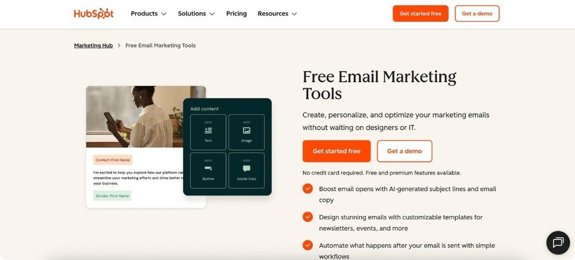 - AI features: Content generation, send-time optimization, and messaging insights via the Breeze tool.