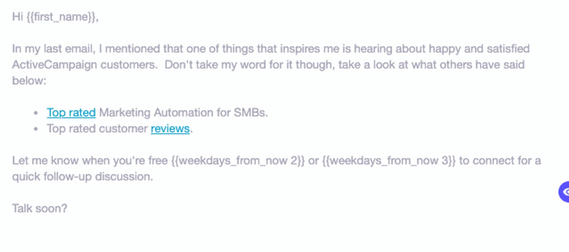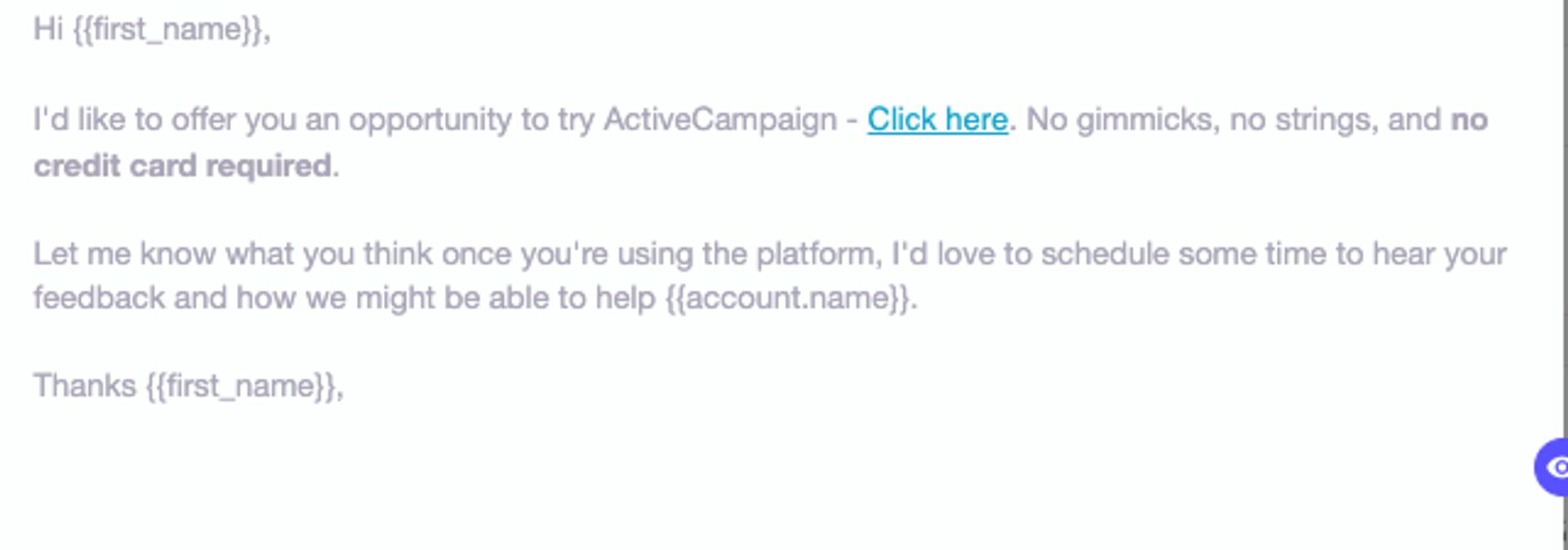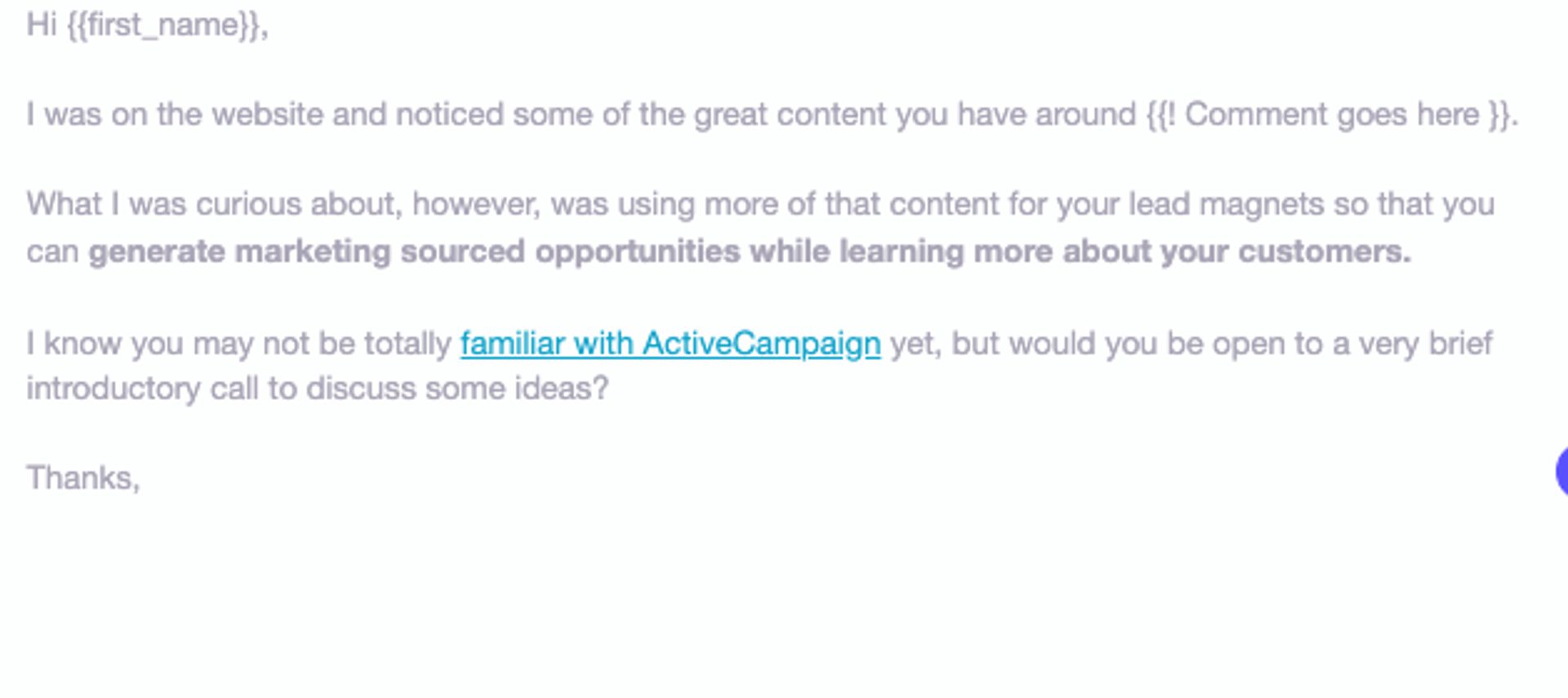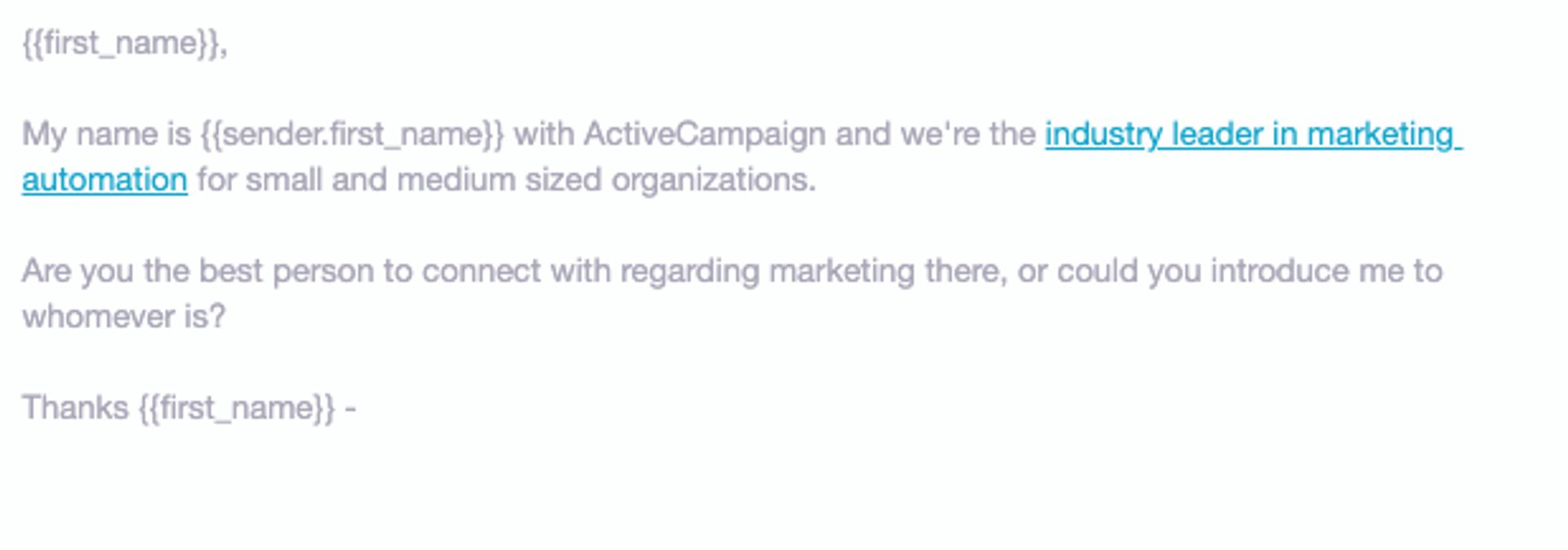 Short, sweet, to the point. Note the places to use a first name to make a cold email more personal.